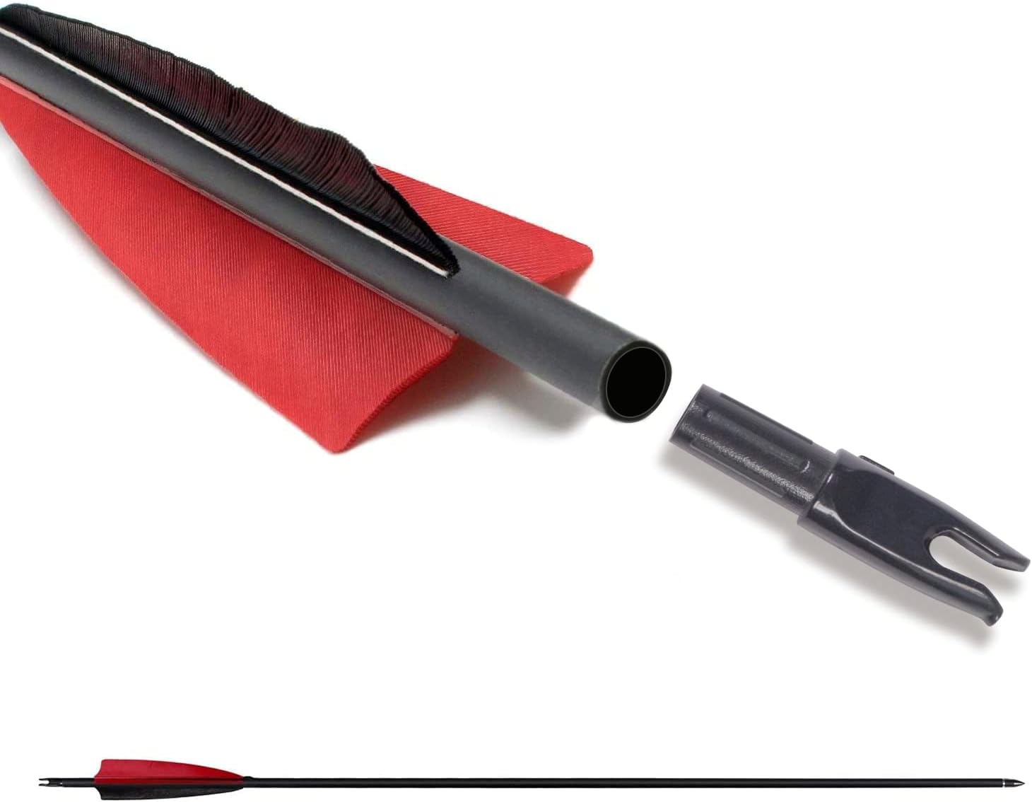 - 【Feather Fletching】: Natural feather arrows for recurve bow, fletching with 2 red 1 black vanes, 500 spine arrows real turkey feather, which make flight always pointed the right way.arrows for compound bow.