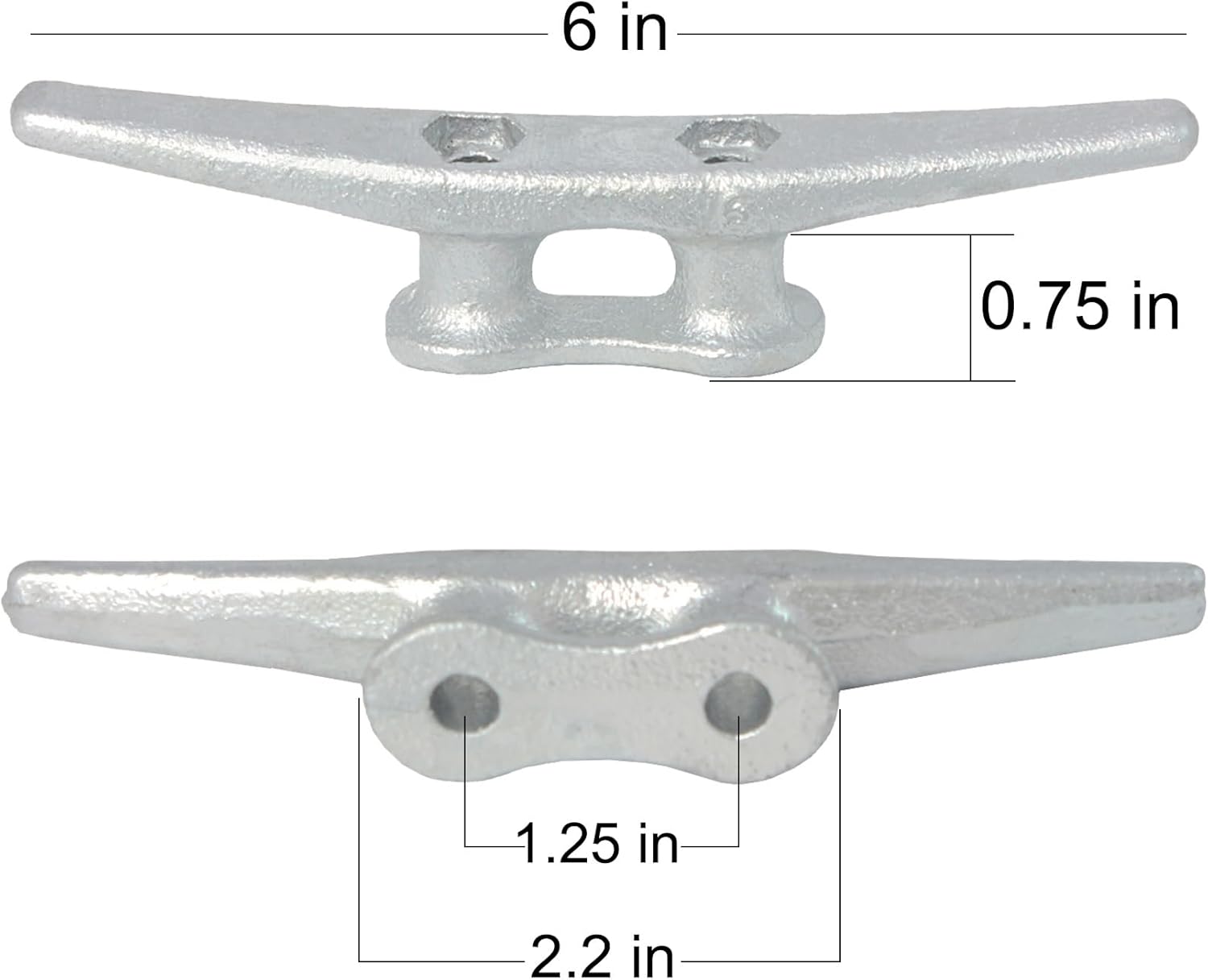 - 【Material】These dock cleats 6 inch are rough cast hot dipped galvanized Iron and offer excellent protection against rust and corrosion resistant. boat cleats metal are known for their strength, they are designed to withstand the rigors of marine environments.The galvanized coating on the iron cleats provides a strong defense against corrosion. The zinc layer acts as a protective barrier, effectively preventing the formation of rust and corrosion on the underlying metal