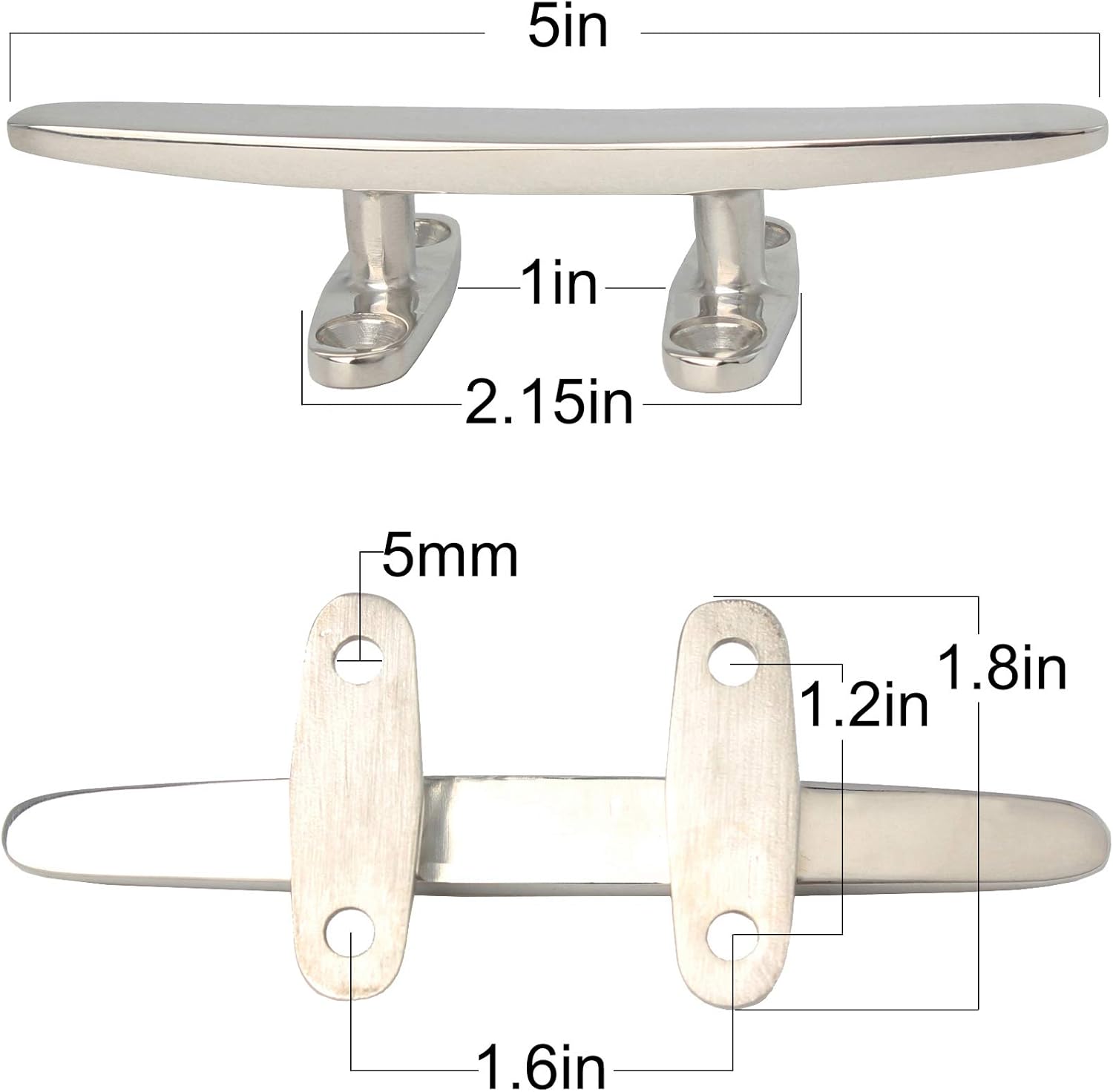 - 【Size & Fasteners 】Our boat dock cleats 5 inch L x 7/8 inch H;base measures 1.8-inch x 0.55-inch; mounting holes 1.6 inch center to center. stainless boat cleat with hardware - M5 x 25mm (1 in) stainless steel screws,size to fit any use. rope cleats for boats are professional grade open-based cleats that are great for use on deck and piers