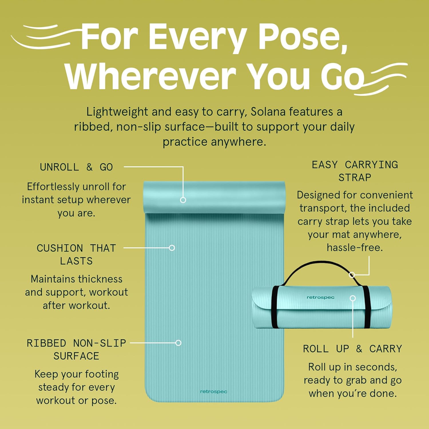 - Non-slip surface: Solana's non-slip material keeps you steady and balanced while staying securely on the floor, preventing injury and allowing you to focus on your practice or workout.
