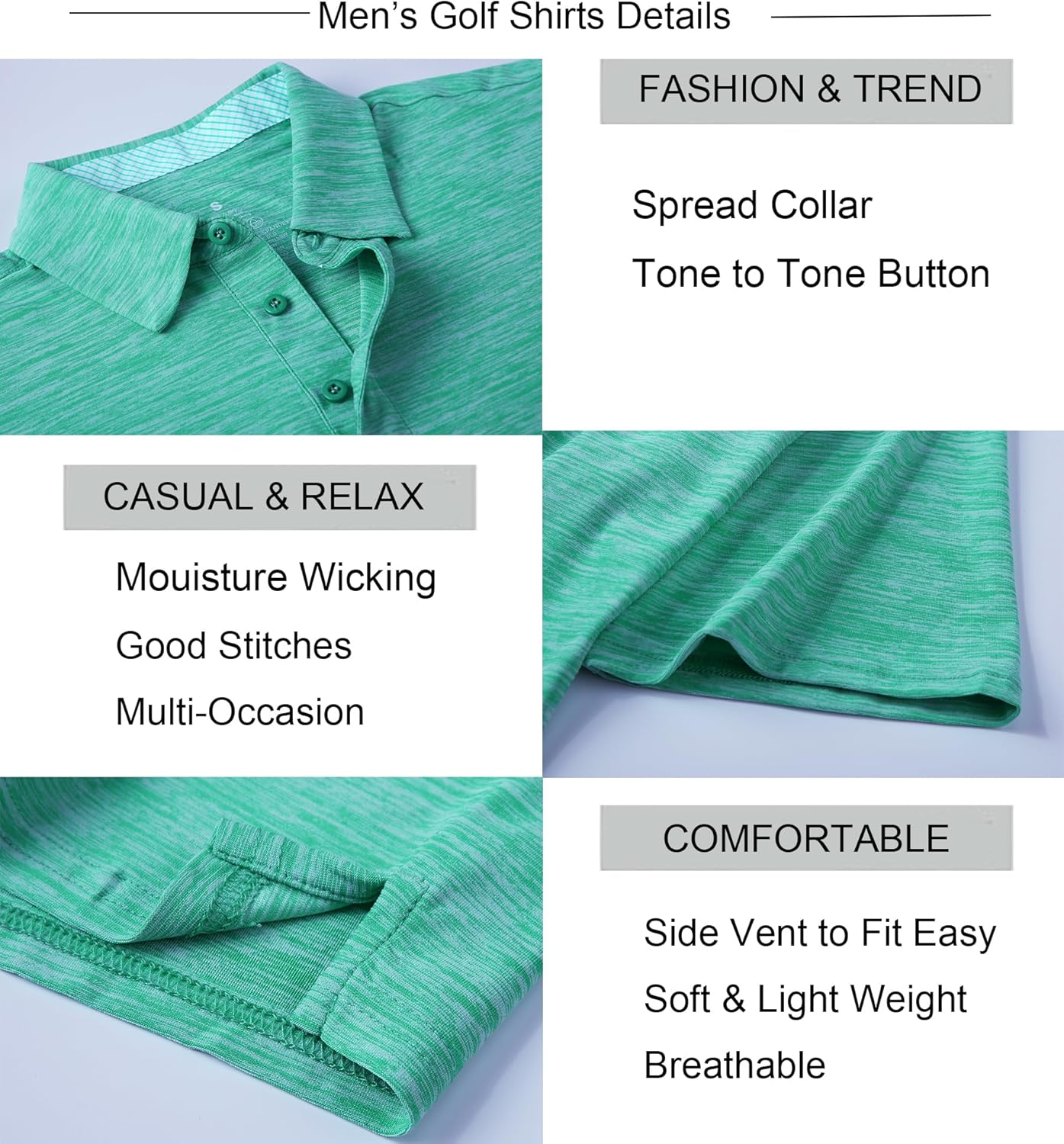 • Material: Our Mens Golf Shirts are made from 85%Polyester 15%Spandex, Light Weight, UPF40+, Quick Dry, Moisture Wicking, Soft, Breathable, Extremely comfy to wear the whole day. Can't beat the quality of this shirt