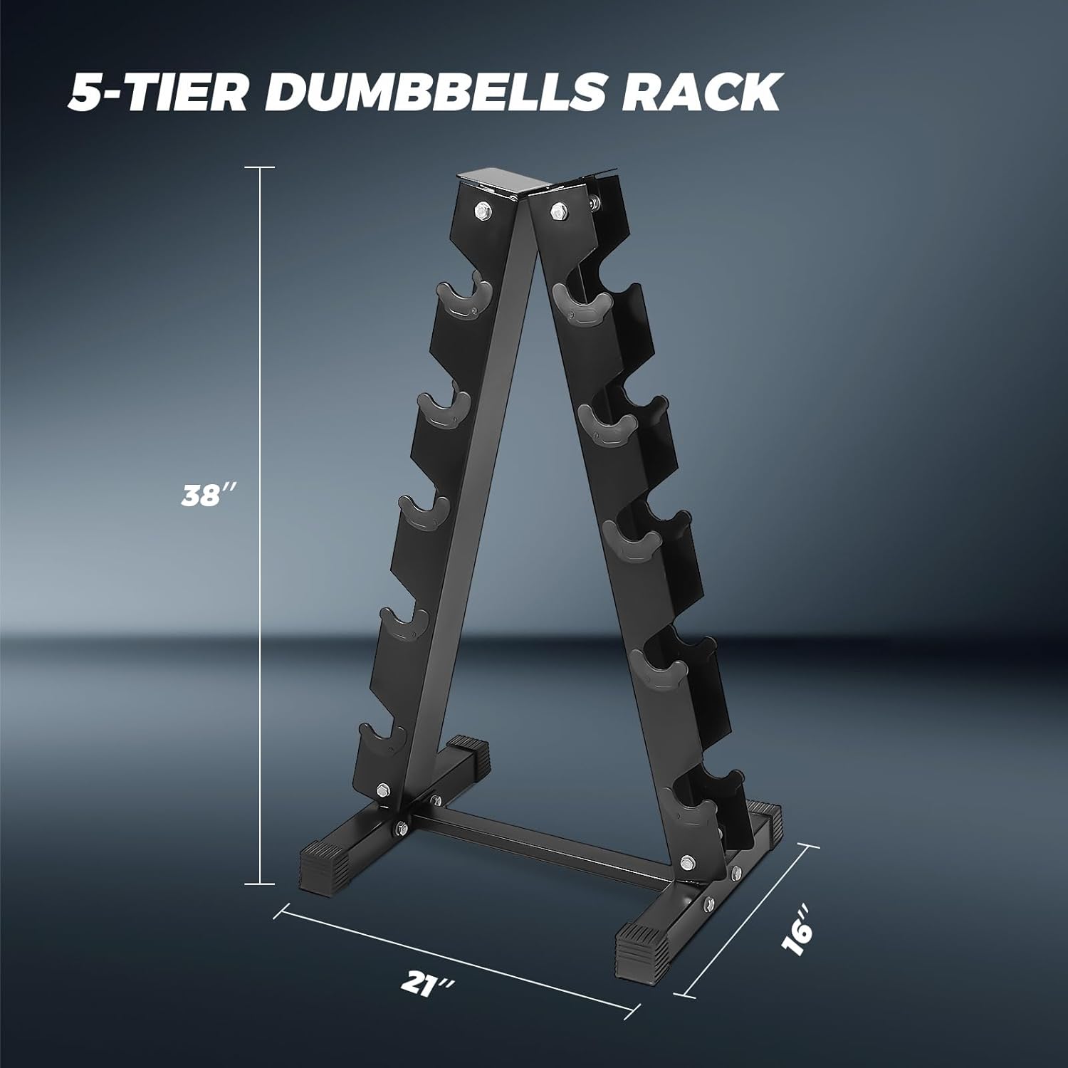 - Sets Included: This package contains a pair of 10LB, 20LB, 30LB, 40LB, 50LB, Dumbbells with 1 X 5-Tier Rack. Designed to store most sizes of dumbbells, the RITFIT Dumbbell Rack is ideal for your home gym setup to keep your training space organized.
