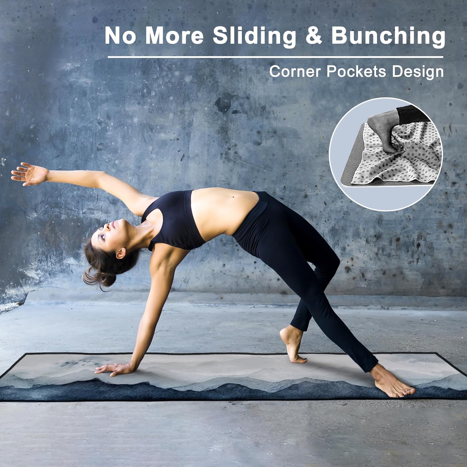 - Corner Pockets Design: Features 4 corner pockets on the backside, the non slip yoga mat towel helps secure and hold onto the mat firmly. This allows you to focus your mind, body and breath on the yoga practice, without worrying about bunching.
