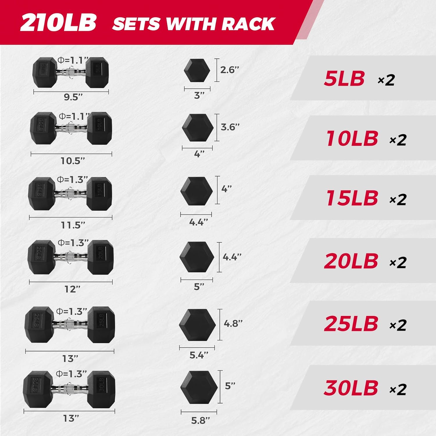 - Complete Set with Storage: Includes pairs of 5LB, 10LB, 15LB, 20LB, 25LB, and 30LB dumbbells plus the RITFIT Dumbbell Rack. This sturdy rack holds all included weights, maximizing floor space and keeping your home gym perfectly organized.