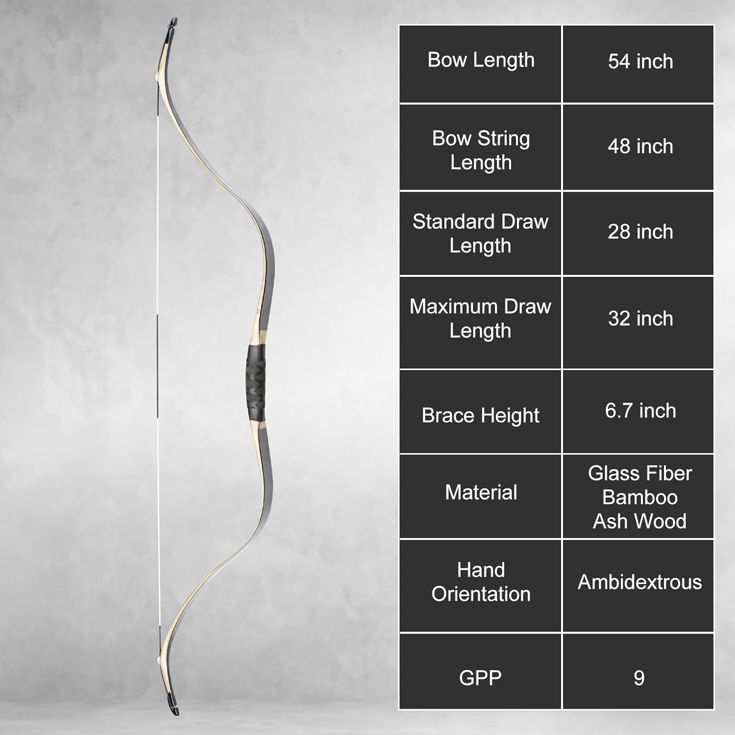 - [Premium Quality Materials] The bow handle and tip are made of maple wood. The limb is compressed by the bamboo and glass fiber layer, which is strong and durable. The weight of the bow body is 0.77lbs.