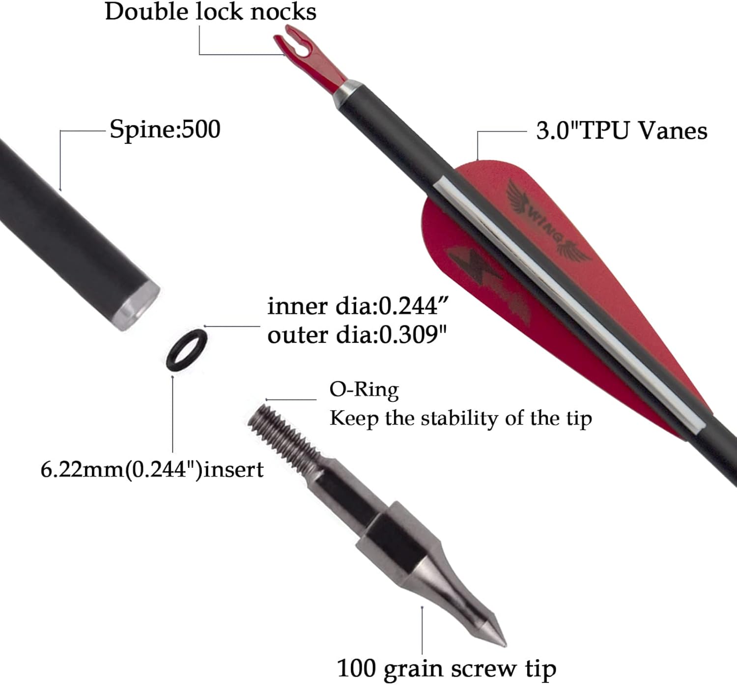 31inch Carbon Arrow Archery Targeting Practice Hunting Arrows for Compound & Recurve Bow with Removable Tips(Pack of 12)