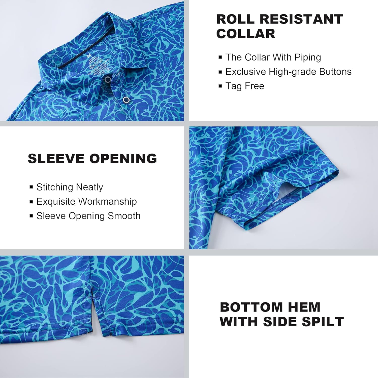 - Fashion Design:This mens golf shirts have a variety of colors for choice and all-over printed 4-way stretch fabric that's silk touch for skin and easy care, well-made stitching ensures our men shirts work well and stay in shape.The polo with 3-button placket,piping collar and bottom side vents,to keep you comfortable and looking good.