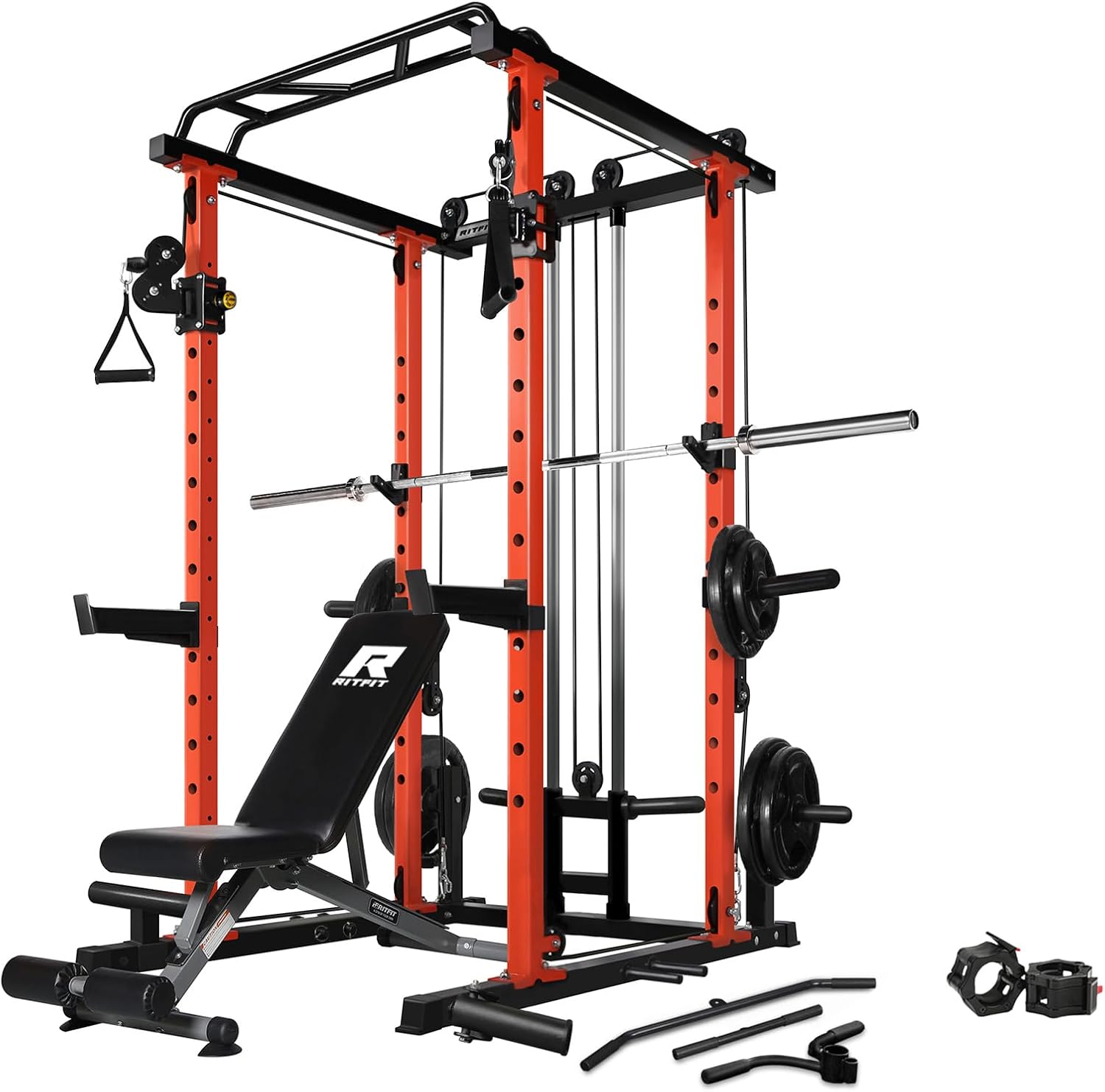 RitFit Multi-Function Squat Rack Power Cage PPC03 with Cable Crossover System, 1000LBS Capacity Power Rack and Packages with Optional Weight Bench, Barbell Weight Set, for Garage Workout & Home Gym