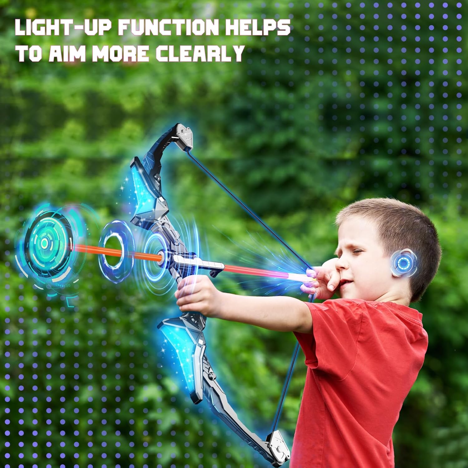 - 【Appealing Outdoor Entertainment】: Our archery set with LED light stands out as a beloved choice among outdoor games for kids. Elevate your child's playtime with the archery set kids aged 10-12, which operates with 2 AA batteries (batteries not included). By using the button on the handle, they can effortlessly switch between two thrilling flashing modes, infusing a cool and captivating element into their archery experience