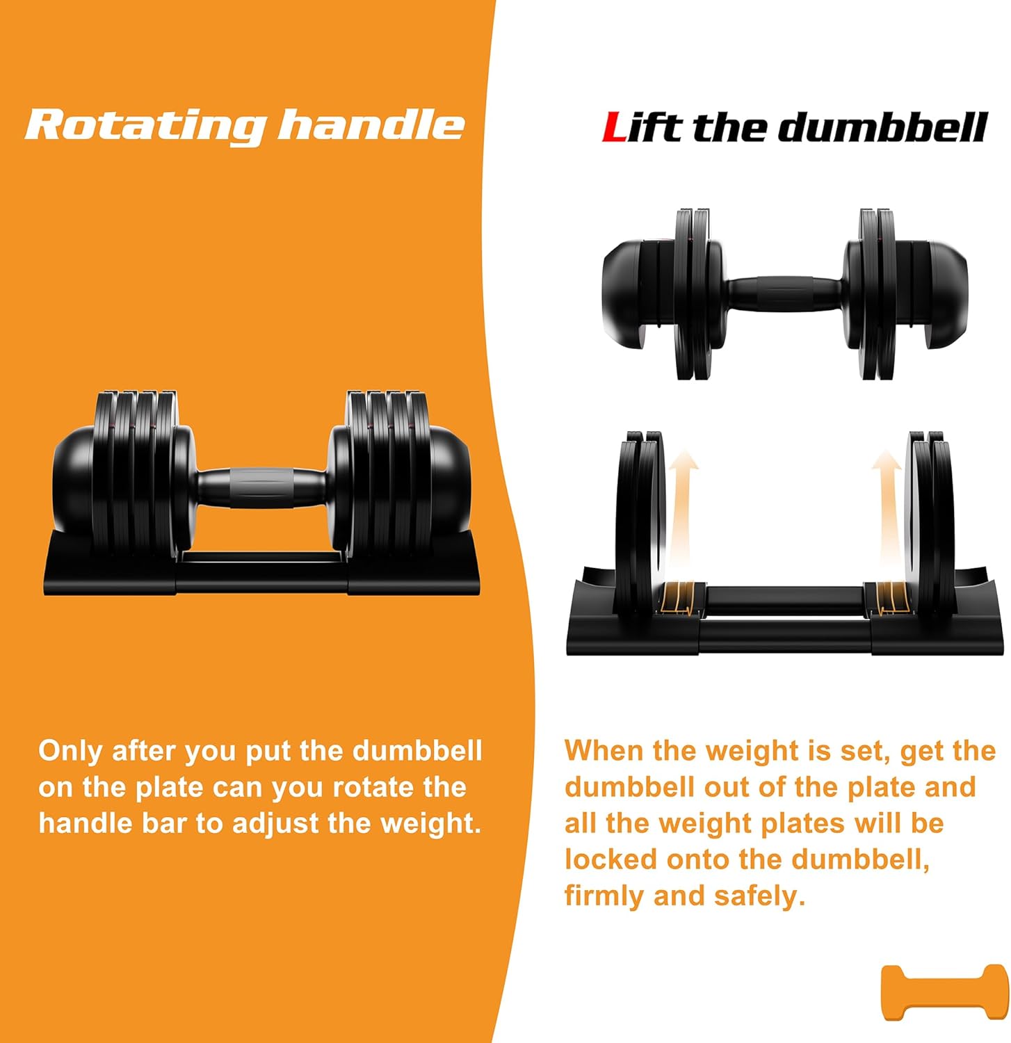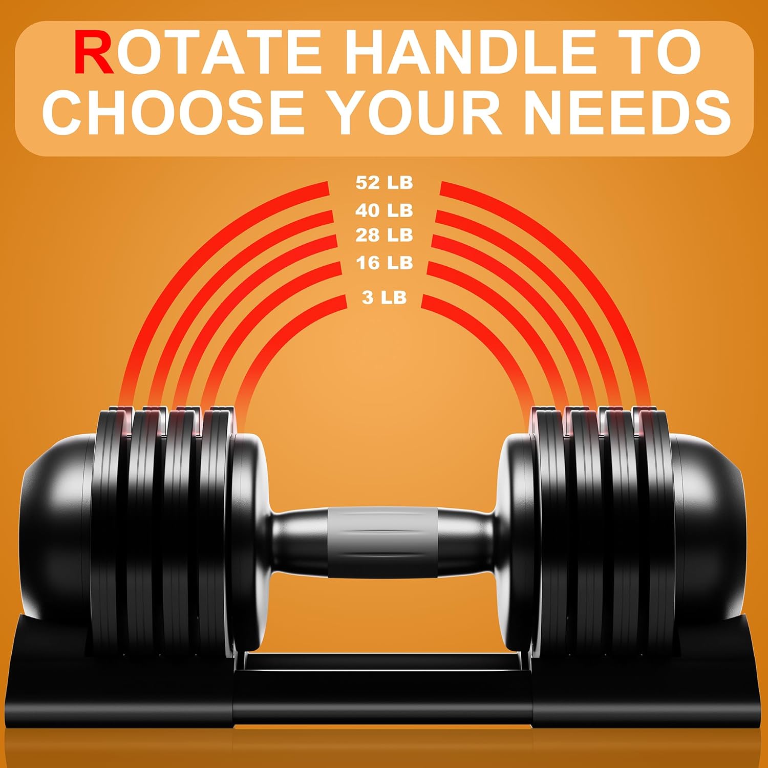 Adjustable Dumbbell,22LBS 44LBS 52LBS Dumbbell Set with Tray for Fitness, Fast Adjust Weight by Turning Anti-Slip Handle, Safety with 8 Lock Slots, Suitable for Men and Women