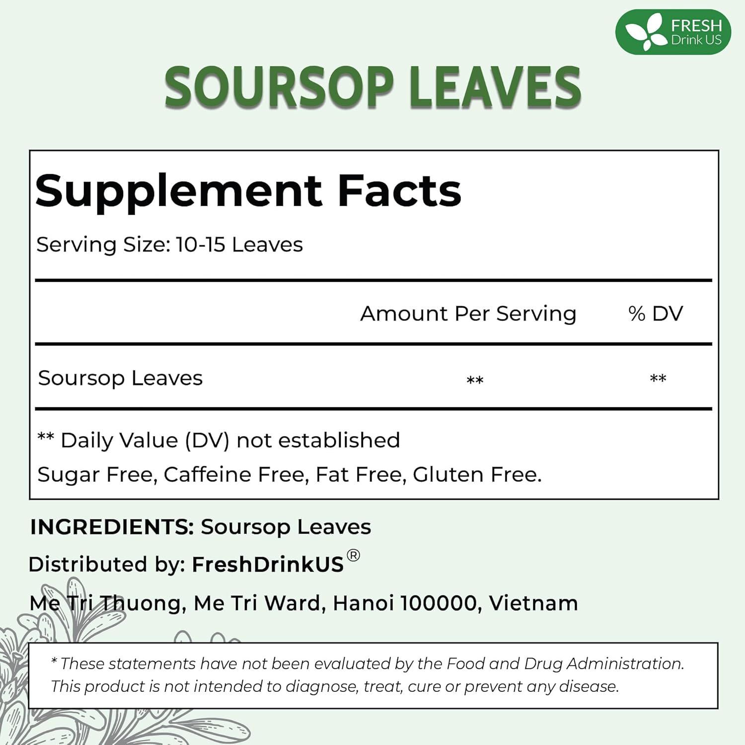 FreshDrinkUS, 240+ Premium Soursop Graviola Dried Leaves Tea, 230-250 Whole Soursop Leaves, Wildcrafted, Graviola , Guanabana , Hoja Guanabana, Loose Leaf Herbal , No Gluten, Vegan