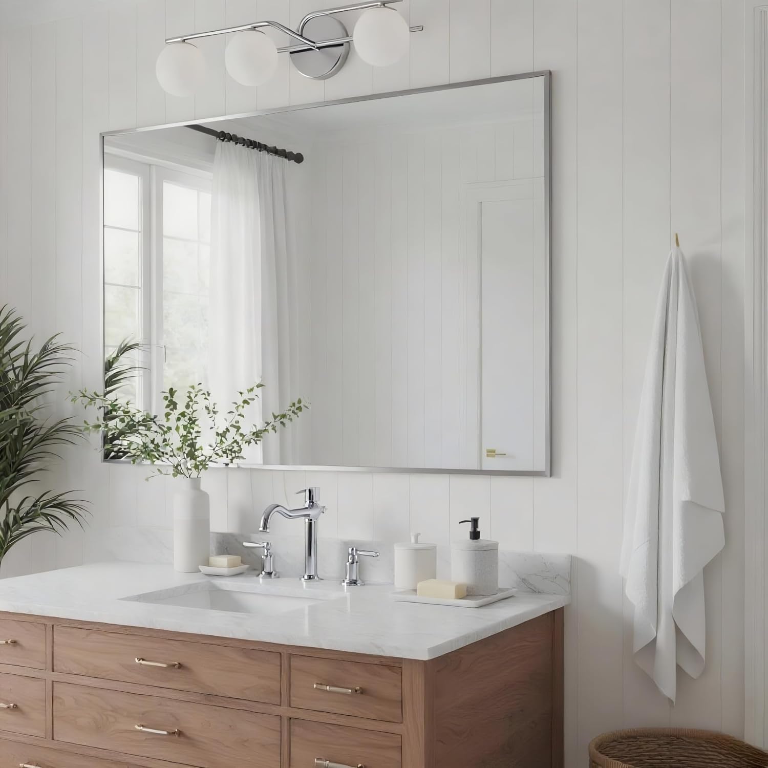 30x40 Inch Nickel Bathroom Mirror for Wall, Aluminum Frame Rectangle Rectangular Vanity Mirror, Modern Large for Bedroom, Living Room, Horizontal or Vertical