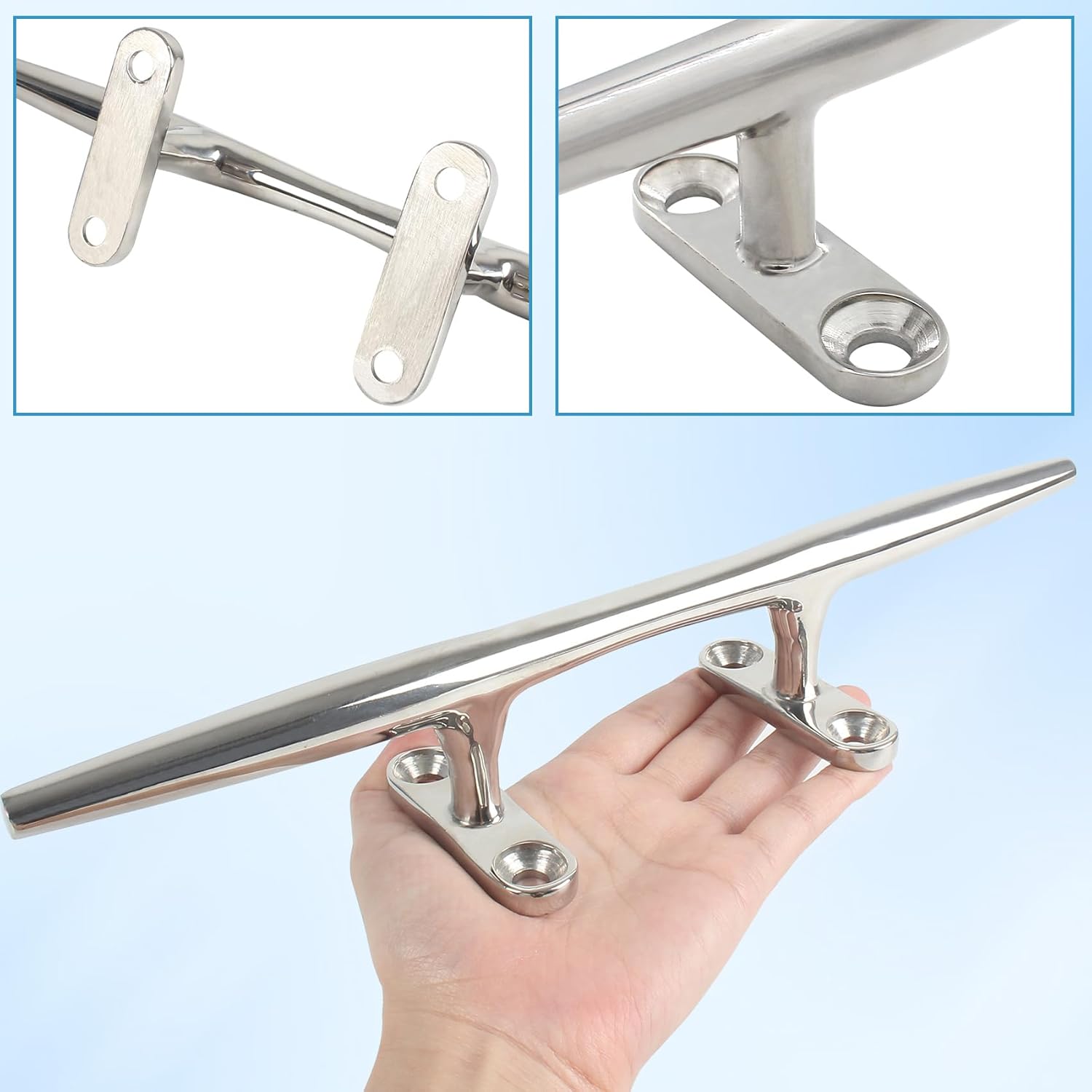 - 【Exquisite Workmanship】Our stainless steel boat cleats is high polished surface,precise,smooth and beautiful;for mirror-like appearance to match marine uses watercraft/boat/yacht,boat docks, decks, piers for tying up boats, kayaks. all of our stainless steel boat cleats for dock are strict tested to ensure the best quality,these stainless steel dock cleats can stand up to a variety of weather, which is stronger