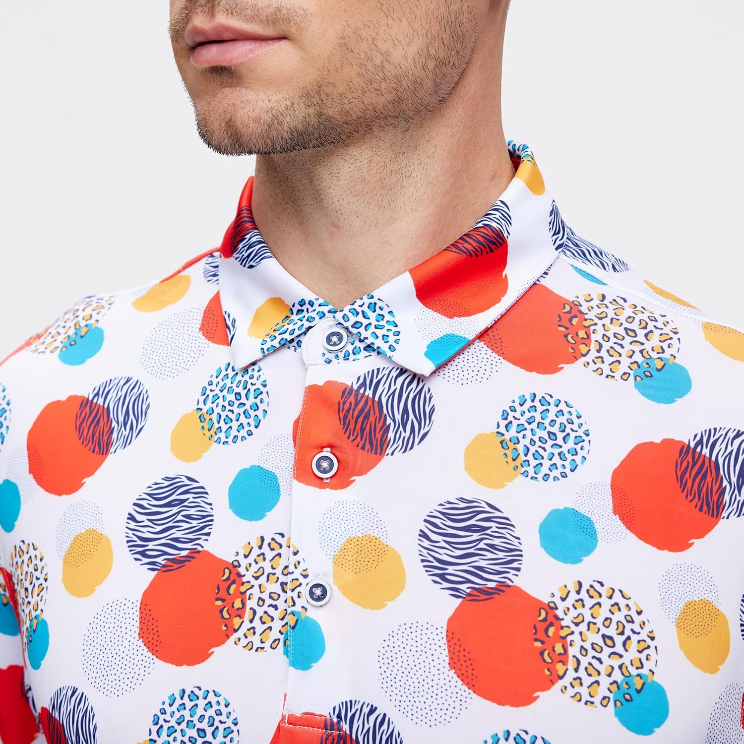 - Chic Style: Our mens polo shirts short sleeve provide stylish and outstanding look, print stretch fabric with easy care, button closure, well-made stitching, piped collar and no curl collar keeps this golf shirt out of shape,the split hem at the bottom increased freedom of movement yet they still have a fitted look.