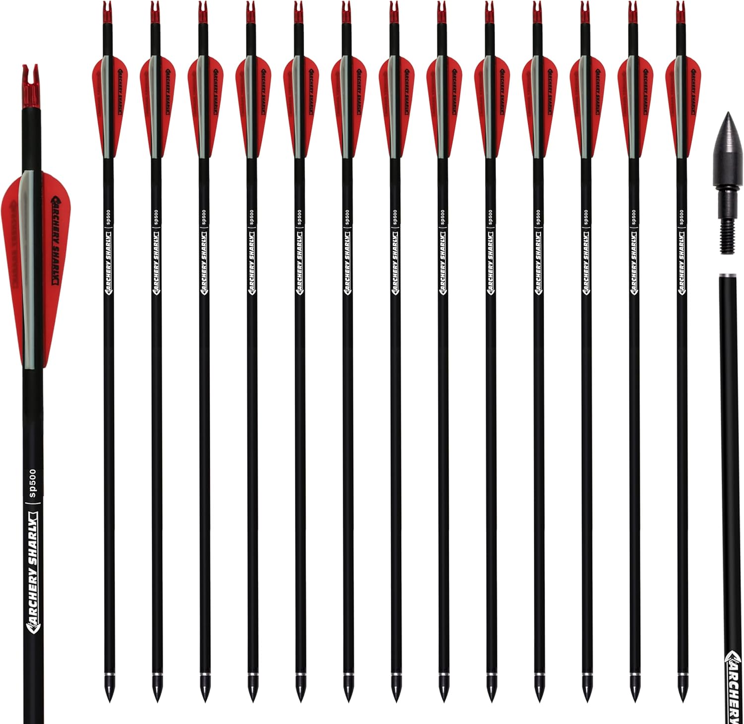 30Inch Carbon Hunting Arrow Targeting Practice Arrows with Removable Tips and Adjustable Nocks for Compound & Recurve Bow (Pack of 12)
