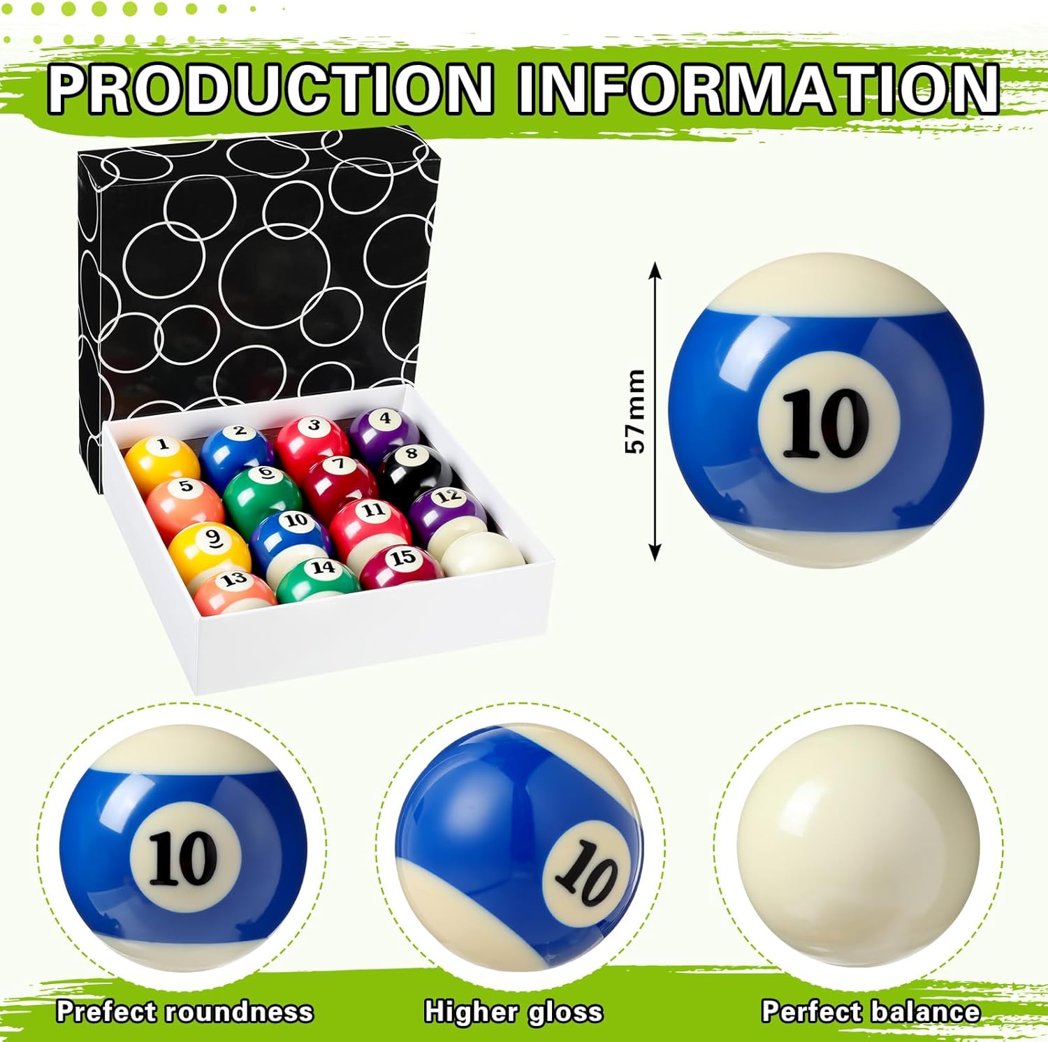 - Quality Materials: the billiard balls are made of quality resin material, offering excellent durability and performance during gameplay; The crafted from solid wood, these pool ball racks and pool table brush in this kit are durable and sturdy, ensuring long lasting use