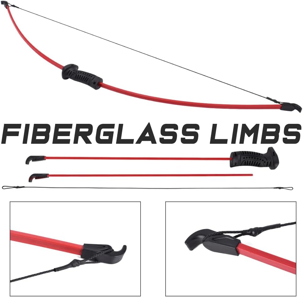 Recurve Bow and Arrow Set Outdoor for Children Youth Junior Archery Beginner Training Includes 2 Types 5 PCS Arrows, Armguard, Quiver, Target Face and Finger Tab