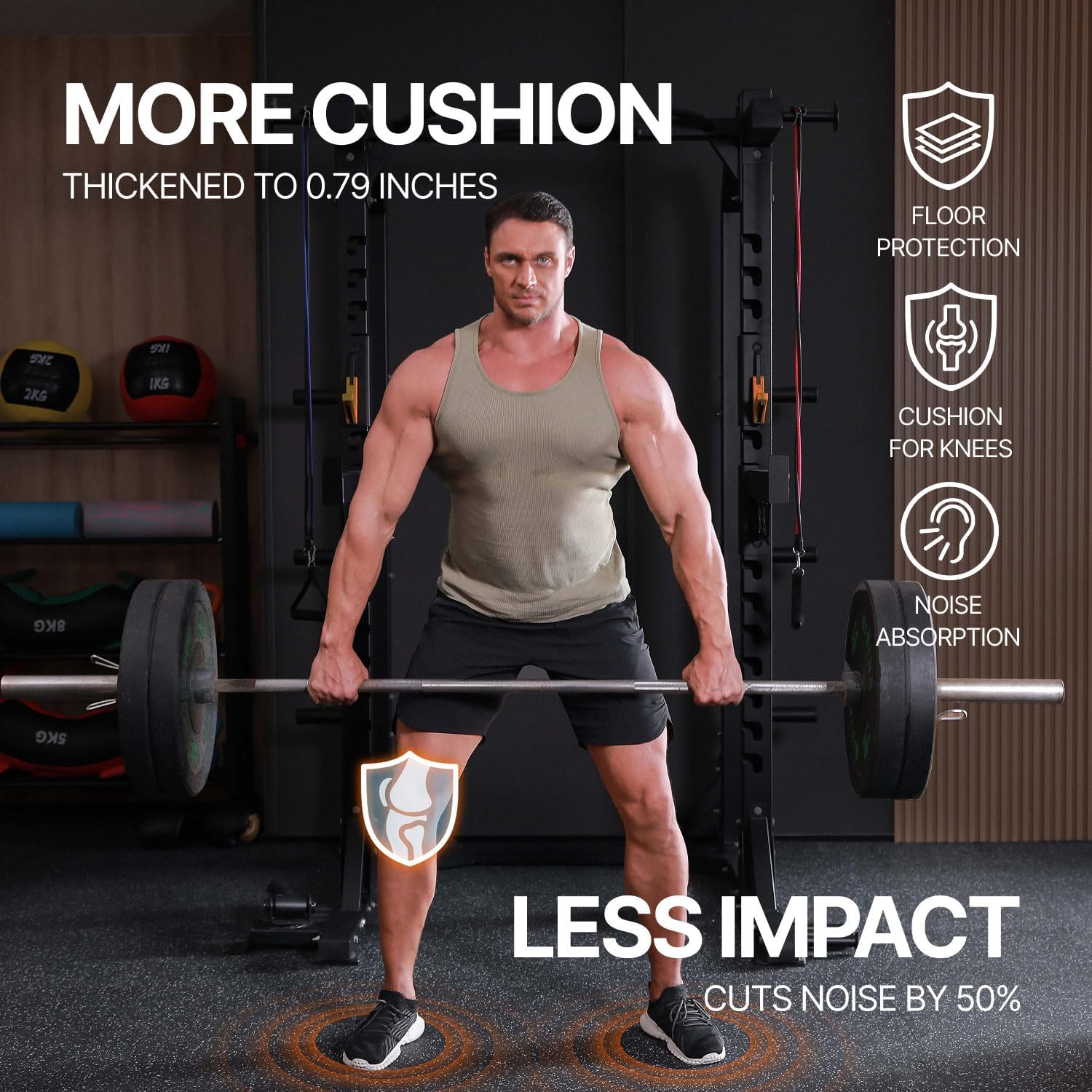 - [Easy to Assemble and Detach]: 6 tiles (24" x 24" x 0.79" each), covers 24 sq ft (6 × 4 ft). Upgraded larger interlocking locks provide a secure fit, preventing any separation during use, ensuring you can work out without concerns of shifting. Simple assembly and detachment make it effortless to set up your home gym.