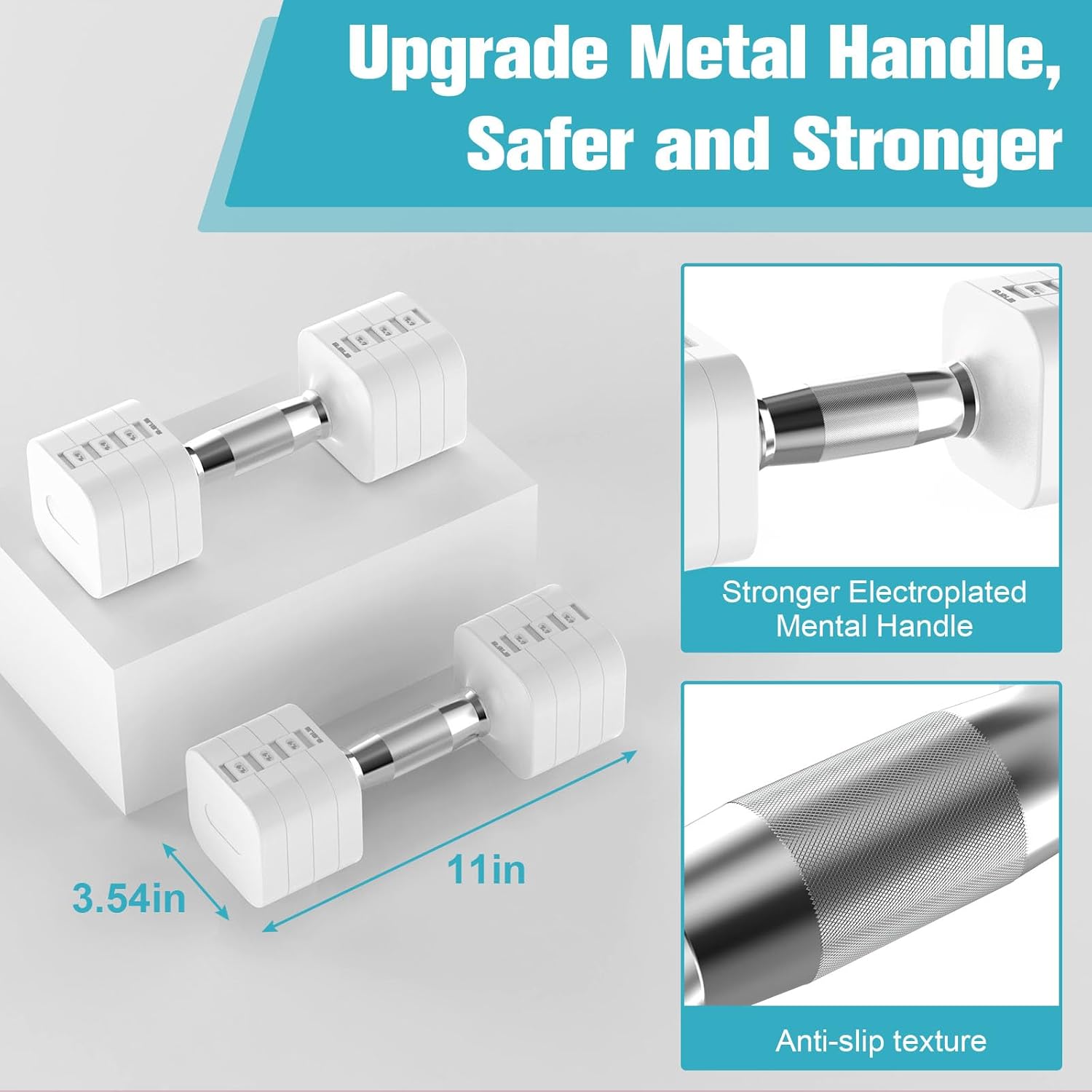 - 【Electroplated Metal Handle】The handle of this adjustable weight uses special electroplated metal for stability and durability. The hand weight set features non-slip bump to avoid slipping after sweating.