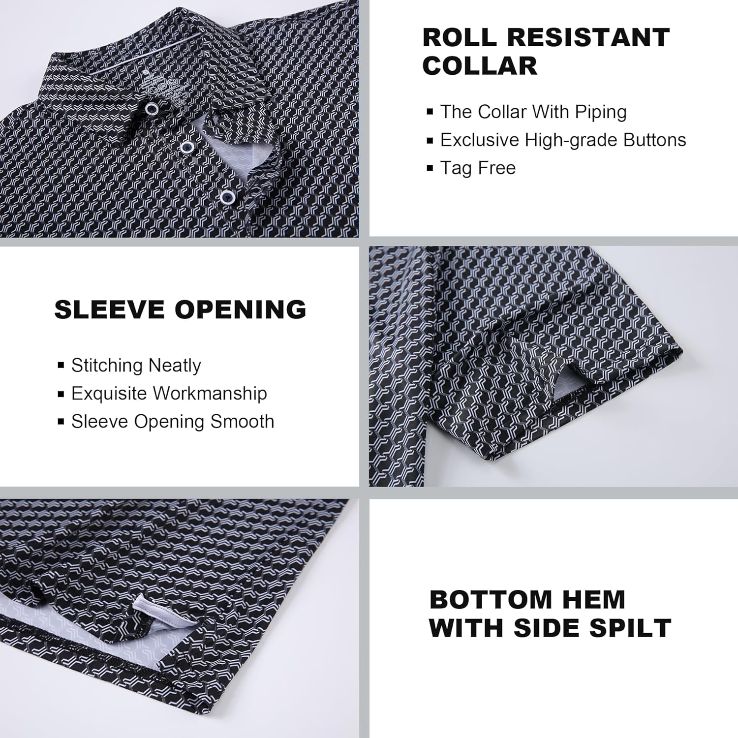 SAMERM Golf Shirts for Men Super Stretch Jacquard Dry Fit Golf Polo Moisture Wicking Short Sleeve Polo Shirts for Men