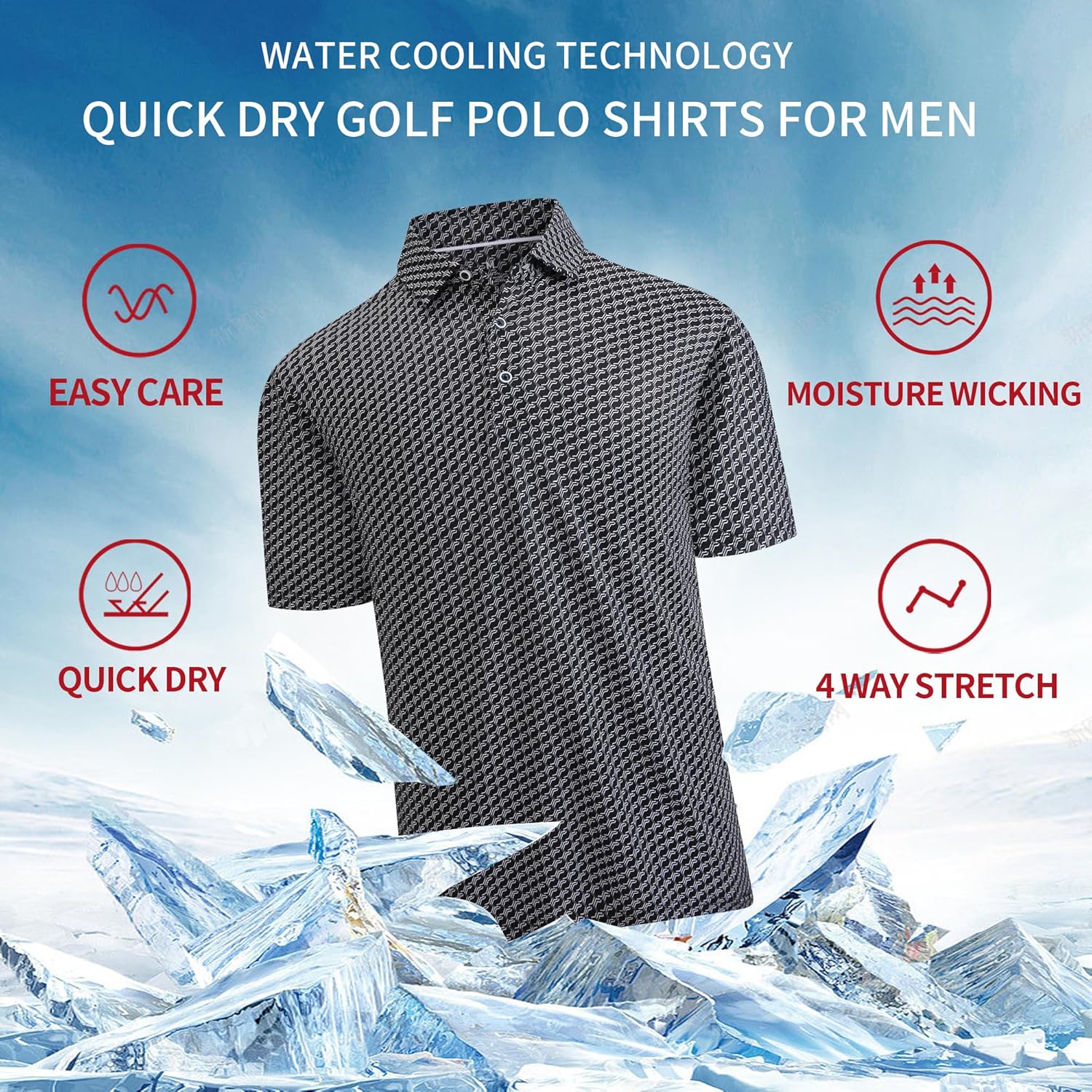 SAMERM Golf Shirts for Men Super Stretch Jacquard Dry Fit Golf Polo Moisture Wicking Short Sleeve Polo Shirts for Men