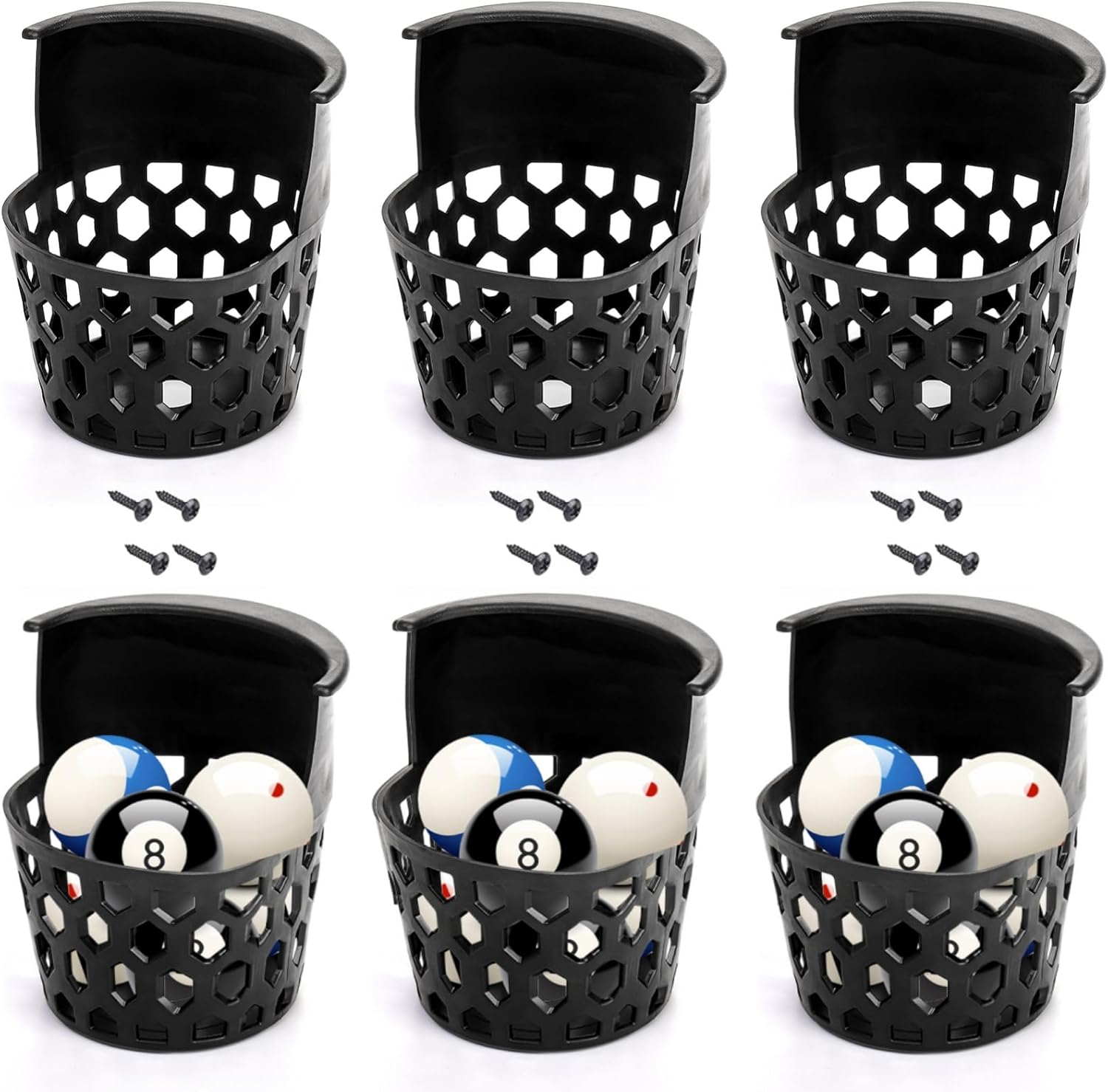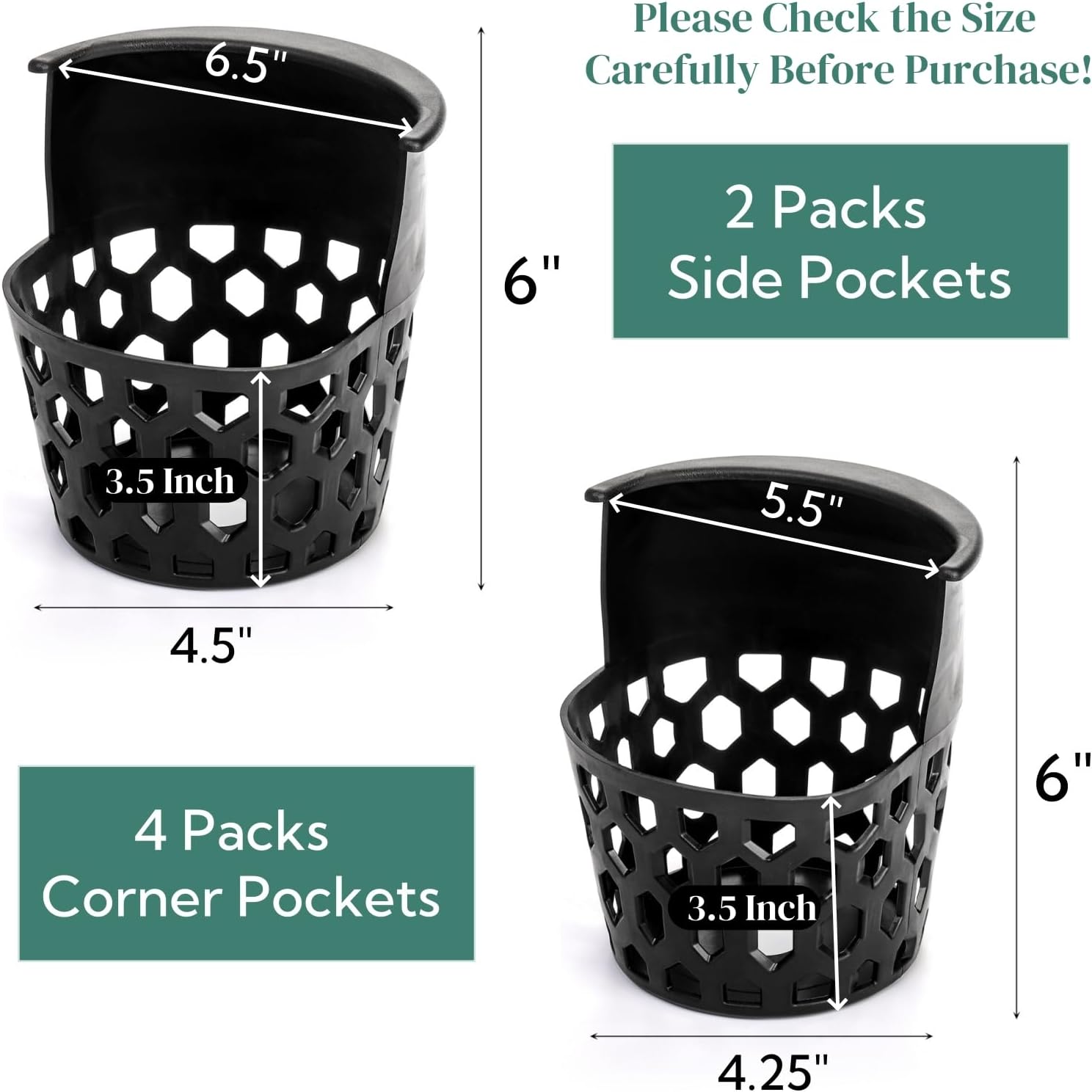 - Large Capacity: The corner pocket measures approximately 6.5"H*6"D and the side pocket measures about 6.5"H*5"H, standard size that could fit in most pool tables, both available for holding 4 to 5 billiard balls easily.