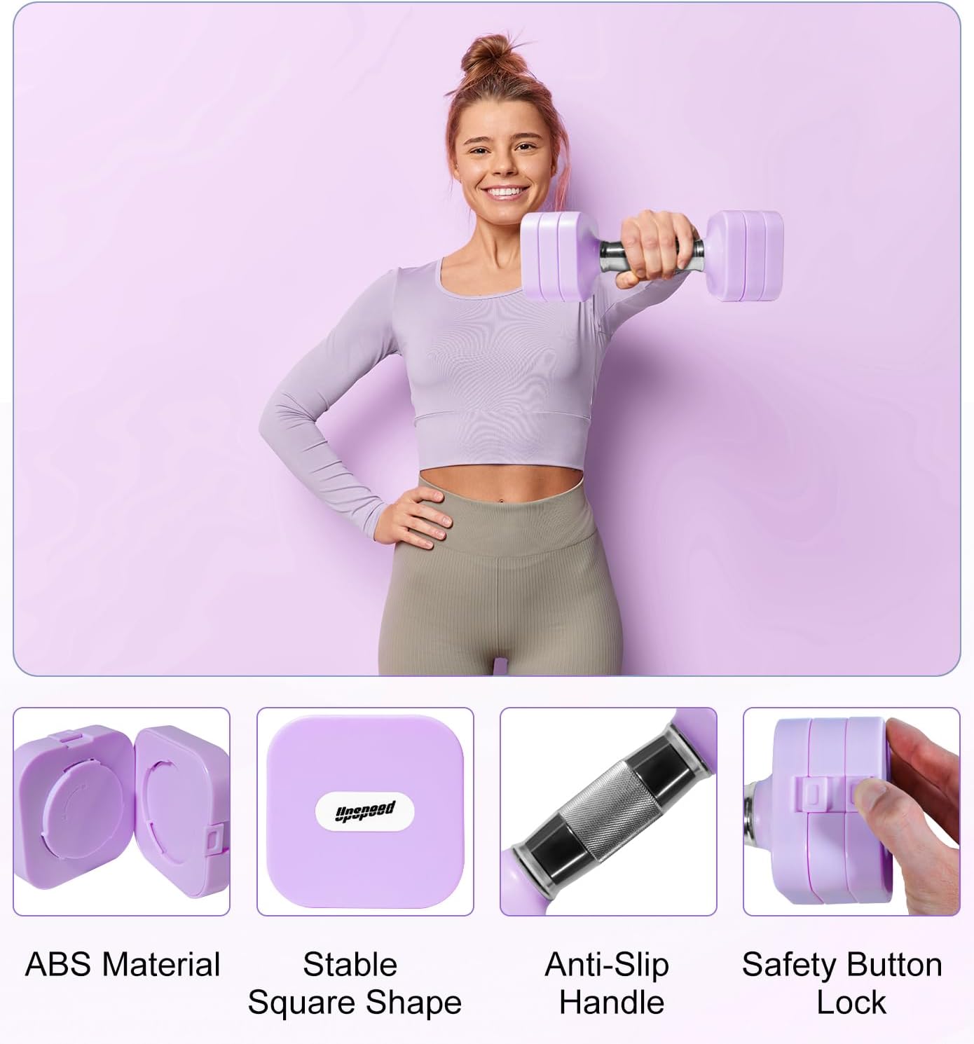 - 4 In 1 Adjustable Hand weights dumbbells set for men women. Dumbbell set for women consists of 8 weight 0.95lbs dumbbell plate, adjustable range is 4lb, 6lb, 8lb, 10lb each weight (A Pair 8lbs 12lbs 16lbs 20lbs).