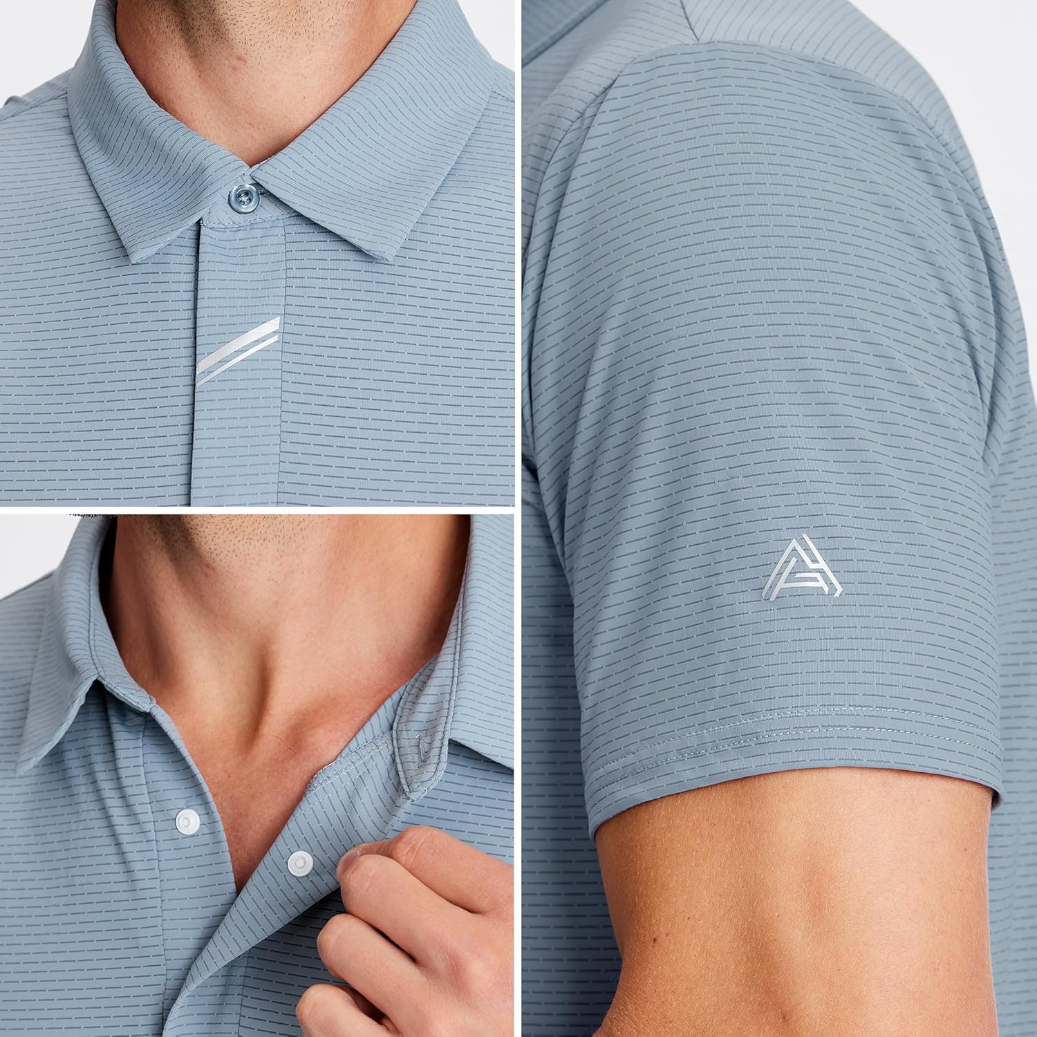 SAMERM Golf Shirts for Men Super Stretch Jacquard Dry Fit Golf Polo Moisture Wicking Short Sleeve Polo Shirts for Men