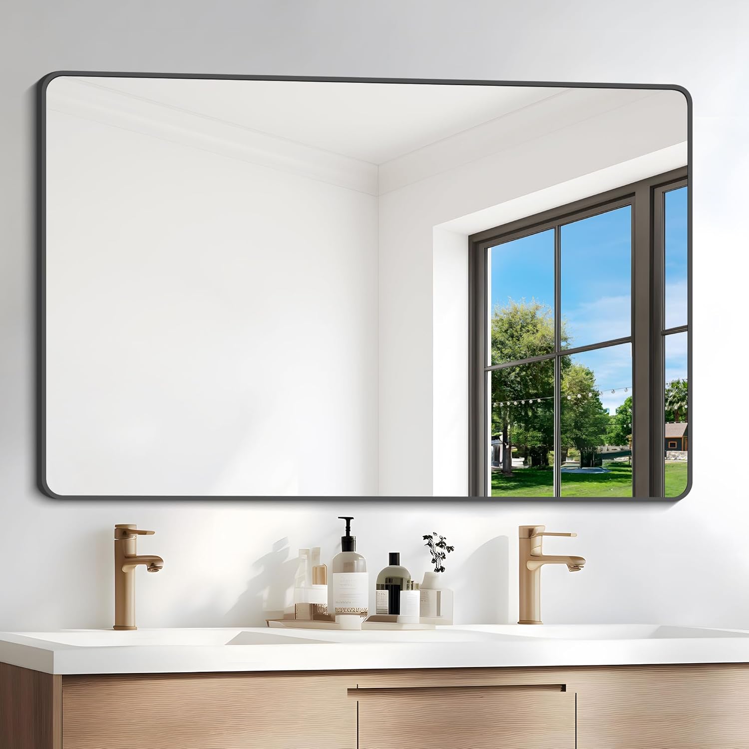 - [4mm HD Shatterproof Glass]:Our bathroom wall mirrors use multi-layer advanced technology, bathroom vanity mirrors are made of HD glass. The mirror reflects clearly and will not be distorted from any angle.