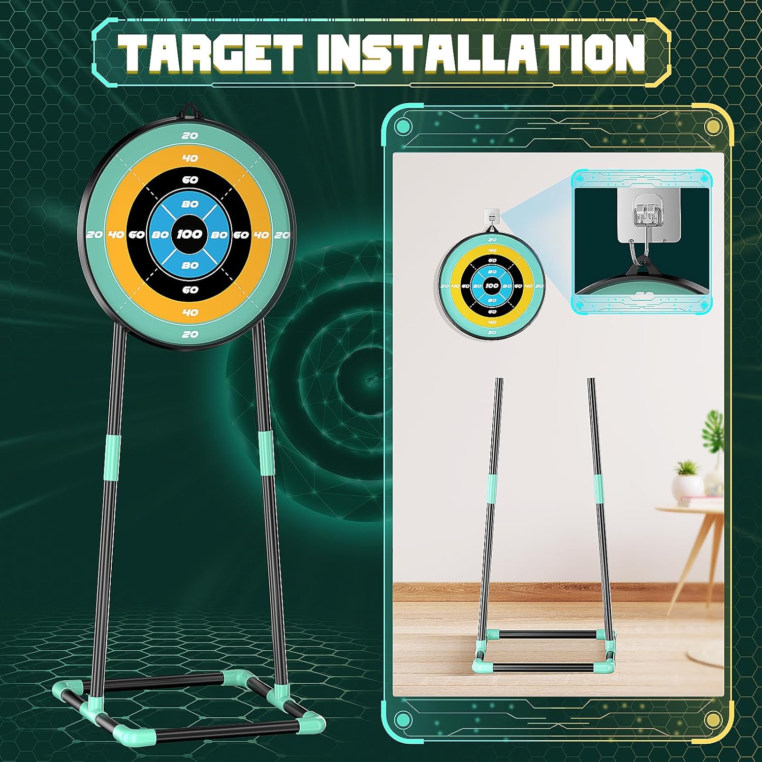 - 【Comprehensive Accessories & Portability】This kids bow and arrow set includes two bows, a quiver, 14 arrows, and a target that can either stand alone or be wall-mounted. It also comes with a screwdriver for convenient battery installation (batteries not included). The archery set is easy to assemble, simple to operate, and lightweight, making it ideal for kids to carry around during play. Whether you're looking for toys for ages 5-7 or toys for ages 8-13, this set is a perfect choice