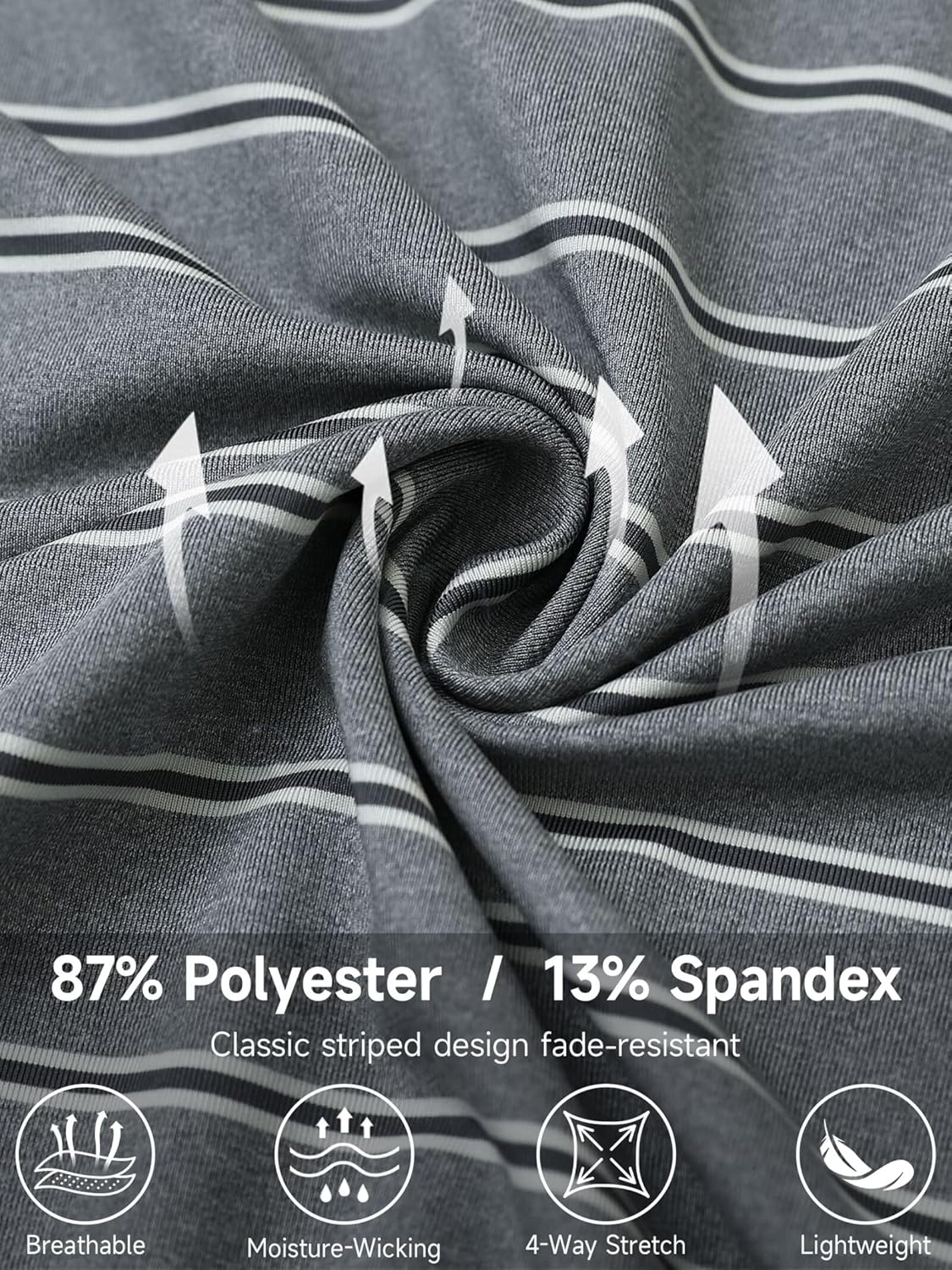Rouen Polo Shirts for Men Dry Fit Performance Heather Stripe Golf Polo Moisture Wicking Lightweight Breathable Golf Shirts