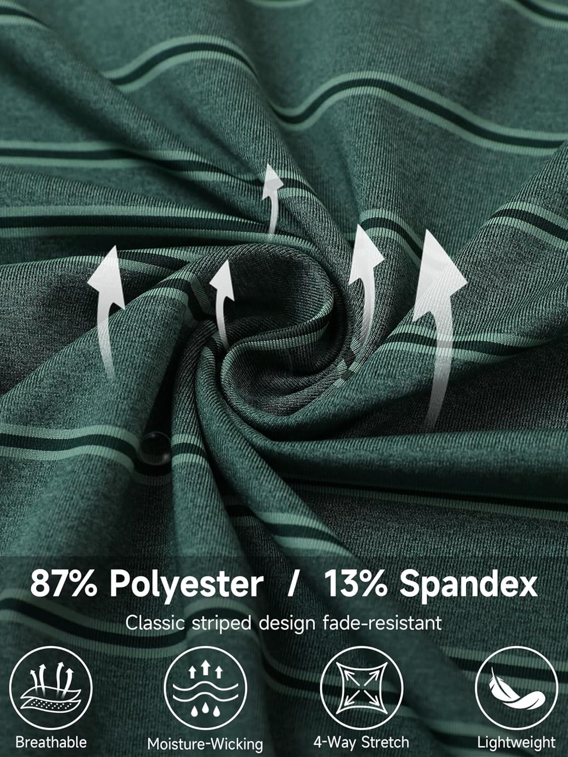 Rouen Polo Shirts for Men Dry Fit Performance Heather Stripe Golf Polo Moisture Wicking Lightweight Breathable Golf Shirts