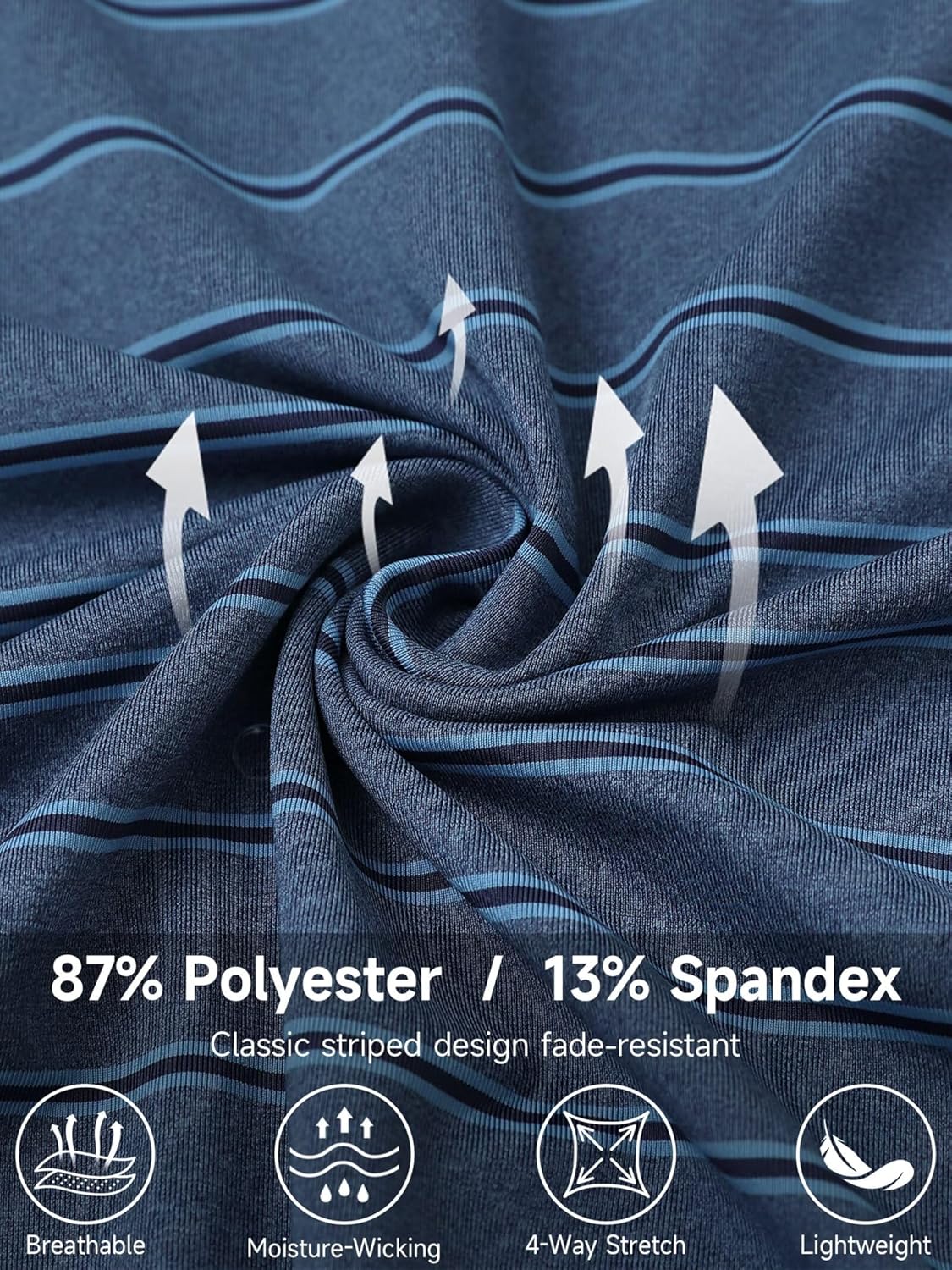 Rouen Polo Shirts for Men Dry Fit Performance Heather Stripe Golf Polo Moisture Wicking Lightweight Breathable Golf Shirts