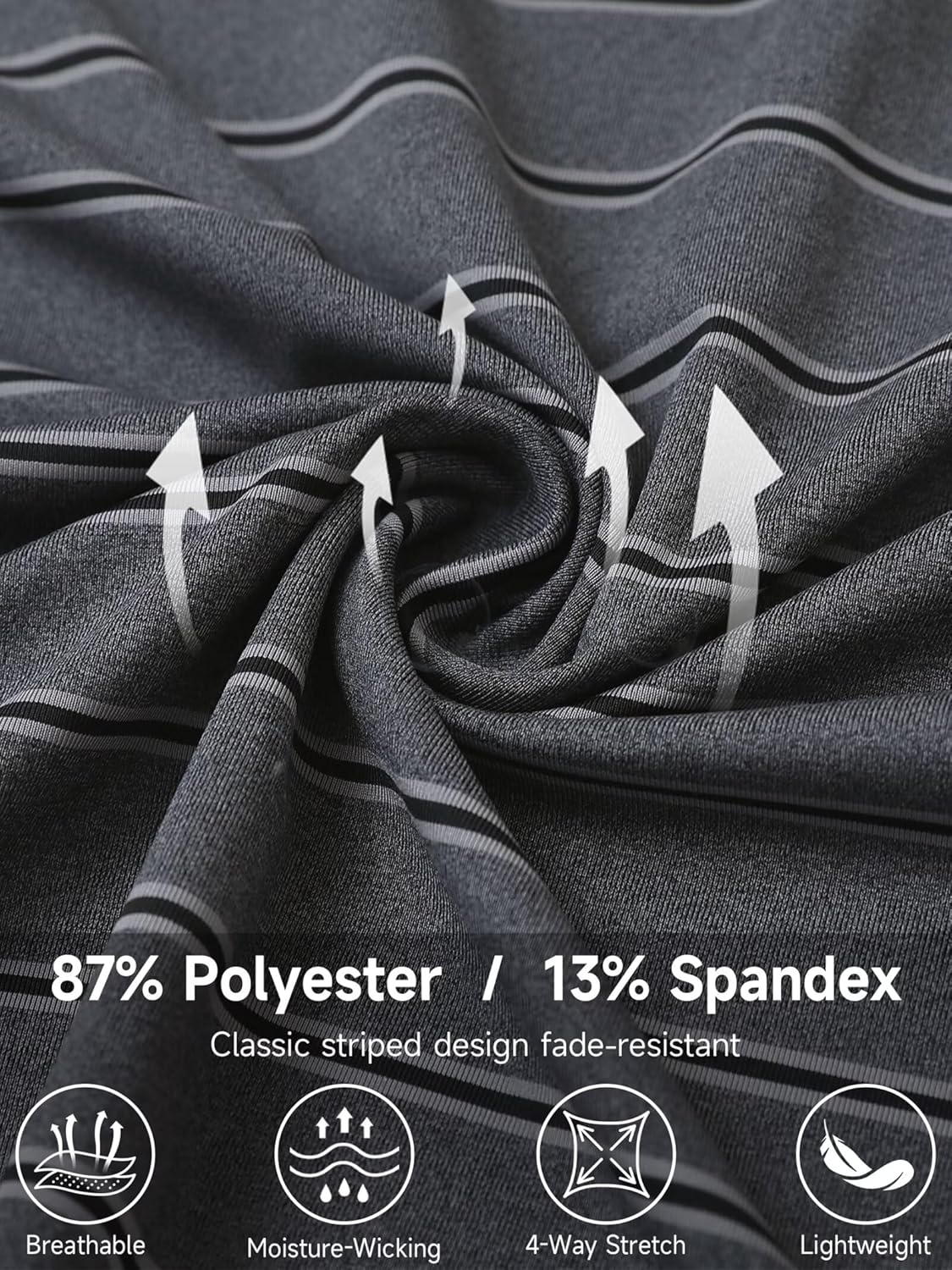 Rouen Polo Shirts for Men Dry Fit Performance Heather Stripe Golf Polo Moisture Wicking Lightweight Breathable Golf Shirts