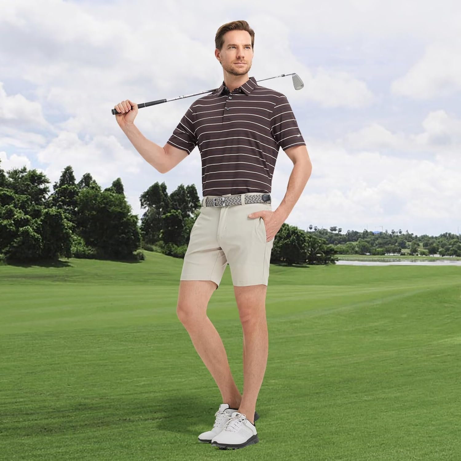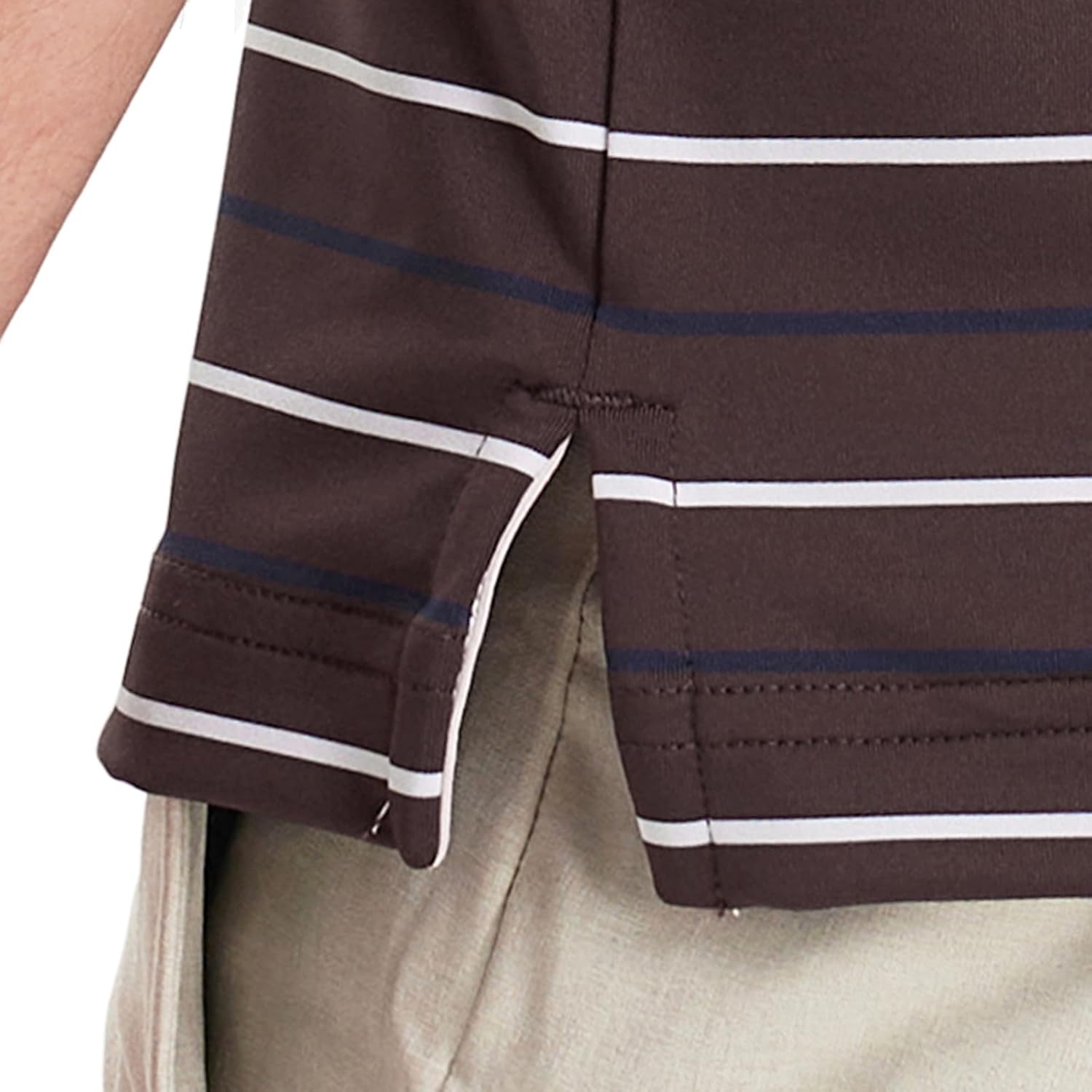 • 【Design】: The three tones stripe adds a stylish touch for our men's golf shirts, effortlessly blends classic elements with modern trends. Feature with button closure and no curl collar keep good shape, well-made stitching, easy care