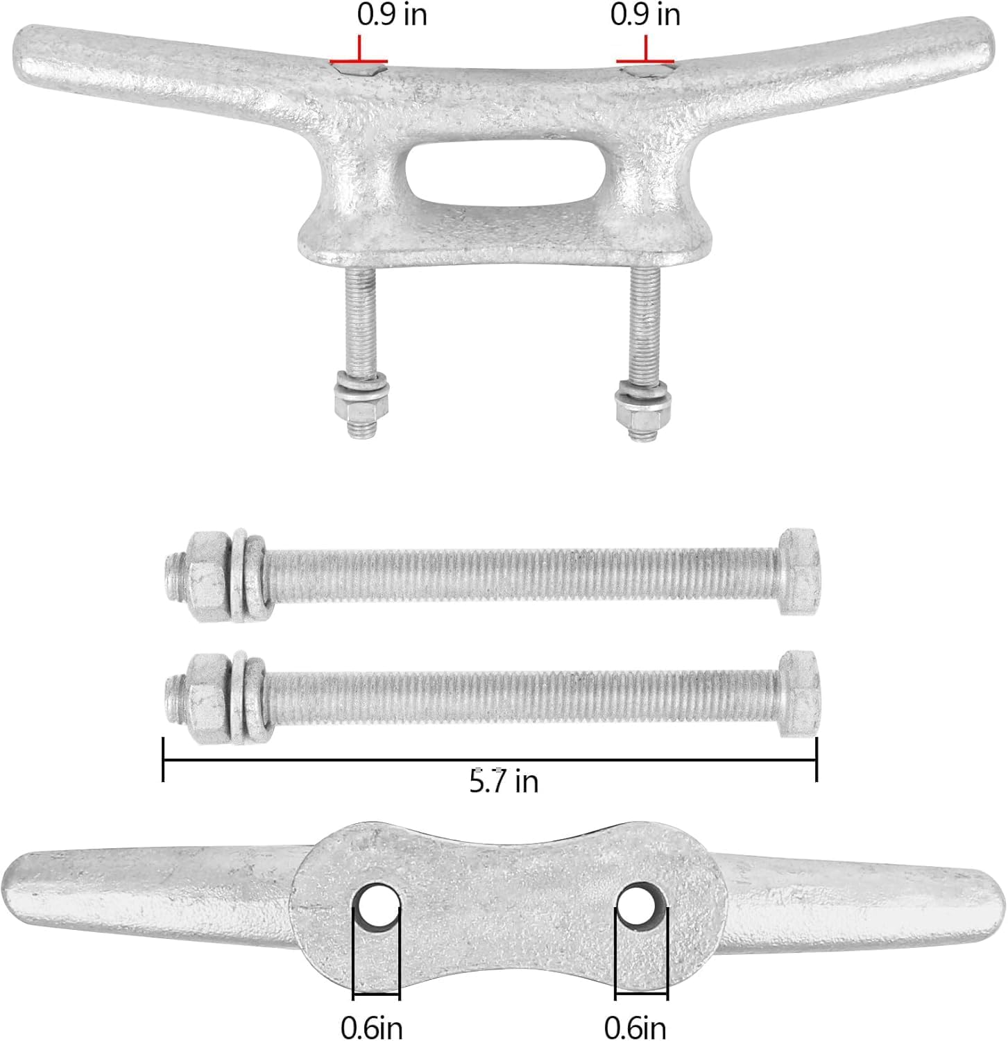 - 【High Quality】These large dock cleats 14 inch are rough cast hot dipped galvanized Iron and offer excellent protection against rust and corrosion resistant. boat cleats metal are known for their strength, they are designed to withstand the rigors of marine environments.The galvanized coating on the iron cleats provides a strong defense against corrosion. The zinc layer acts as a protective barrier, effectively preventing the formation of rust and corrosion on the underlying metal
