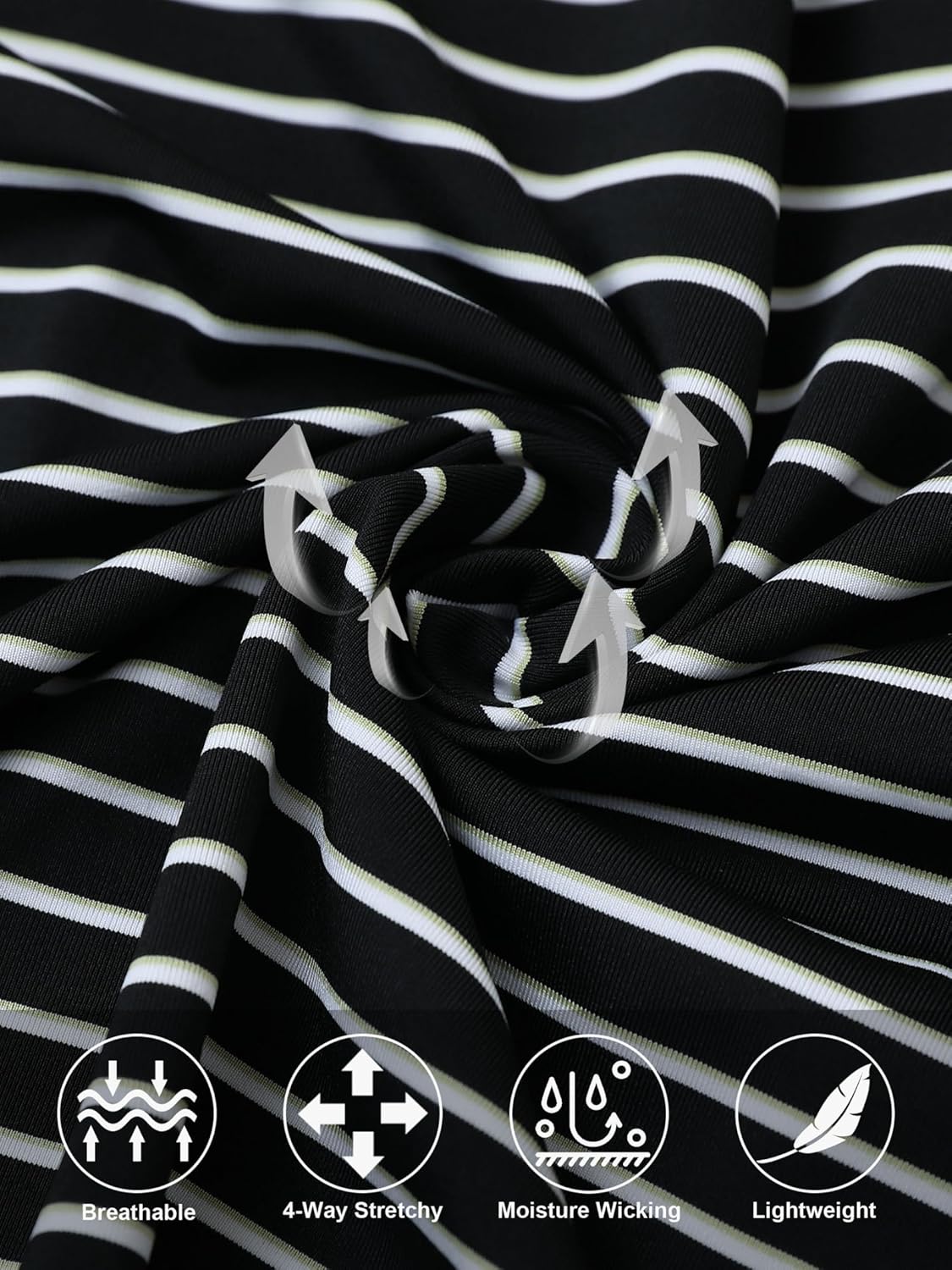 Rouen Mens Polo Shirts Short Sleeve Dry Fit Performance Moisture Wicking Causal Striped Polo Collared Golf Shirts for Men