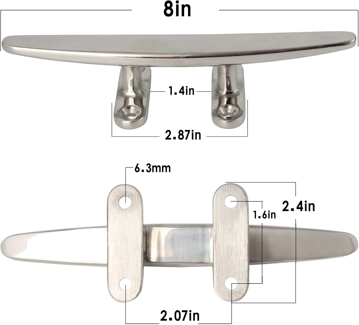 - 【Strong Materials】The boat cleats 8 inch made of 316 stainless steel material, corrosion resistant in saltwater environment, offer excellent protection against rust and good performance,boat tie down cleats to can resist the harsh marine environment. dock cleat for dock lines,mooring and etc. dock boat cleats can be quickly applied to variety of ropes and docks