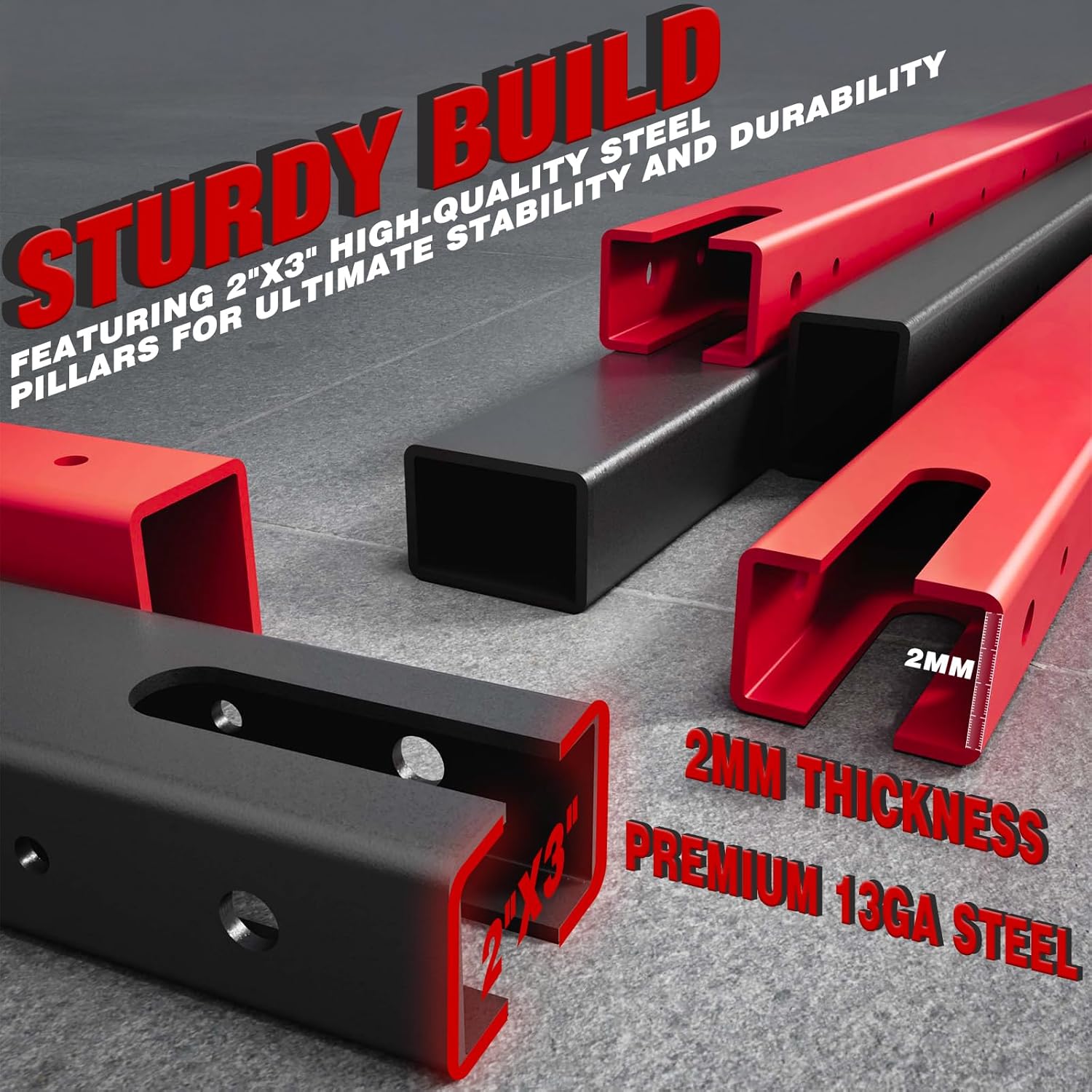 - Industrial-Grade Stability and Durability: Crafted with 2"x3" steel uprights, the RitFit Buffalo Power Cage boasts dimensions of 79" x 68" x 83" for an imposing presence in your home gym. Its robust construction ensures exceptional stability and durability, standing up to the rigors of intense training sessions.