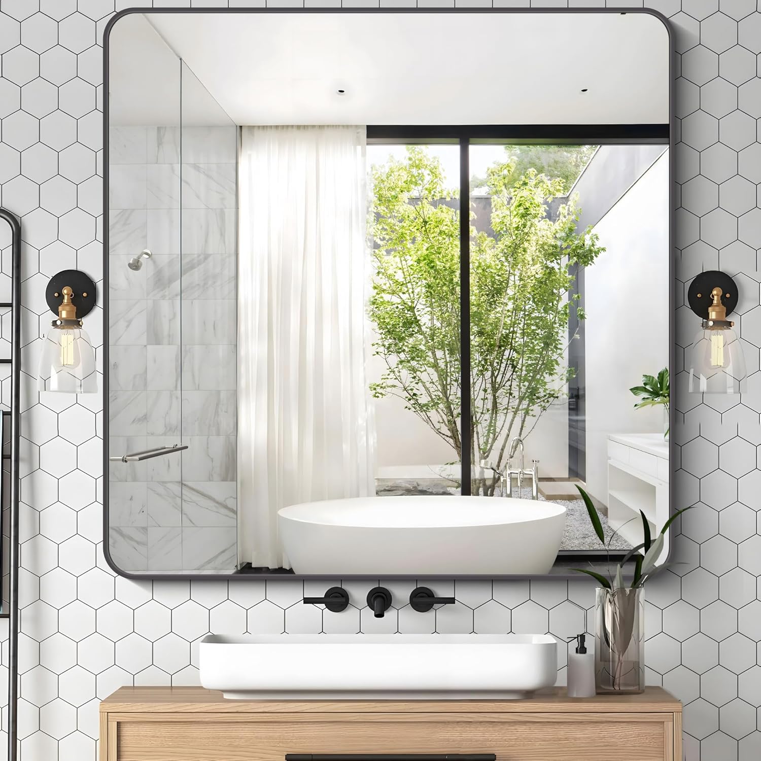 - [4MM HD Shatterproof Glass]:Our bathroom wall mirrors use multi-layer advanced technology, bathroom vanity mirrors are made of HD glass. The mirror reflects clearly and will not be distorted from any angle.