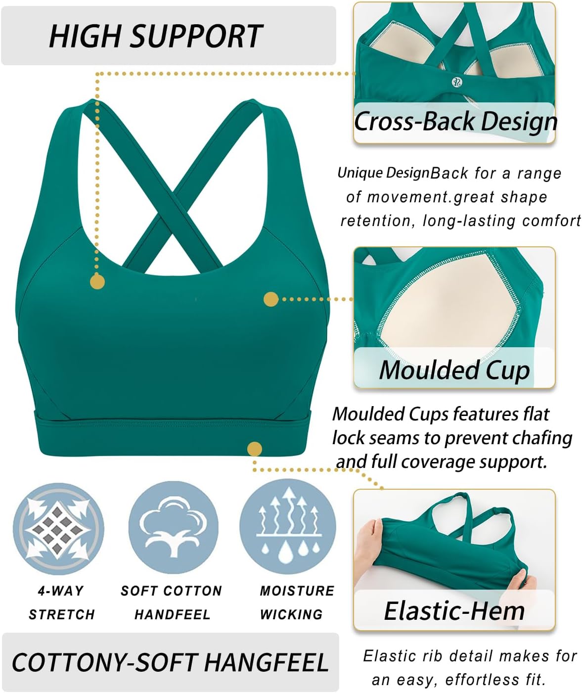RUNNING GIRL Sports Bra for Women High Support Molded Cup Strappy Running Sports Bras with Sewn in Pads