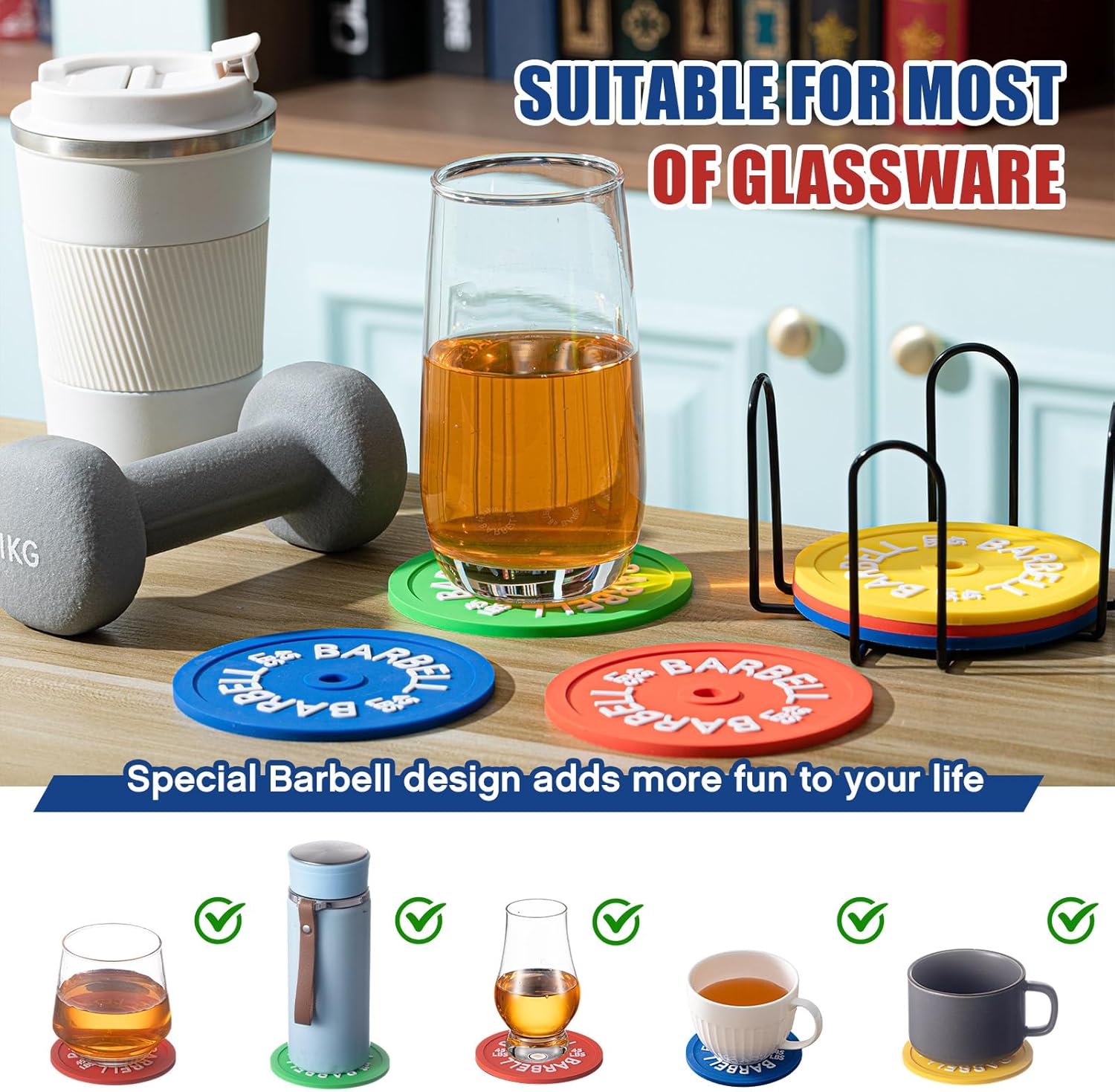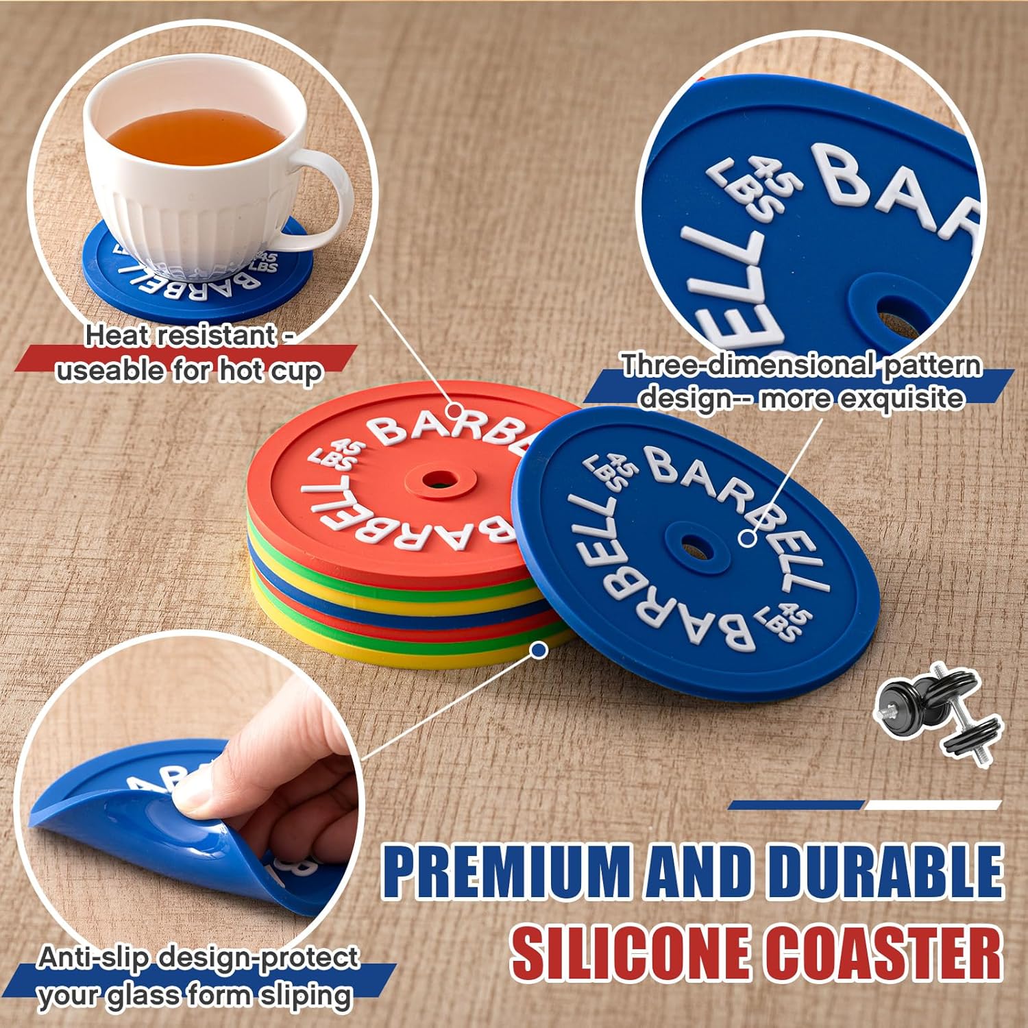 - Eye Catching And Inventive Design: the barbell coasters with astonishing gym inspired pattern enhances the aesthetics of your living space, the regular coaster design has been twisted and revamped with an ingenious barbell plate design, making it an appealing conversation starter