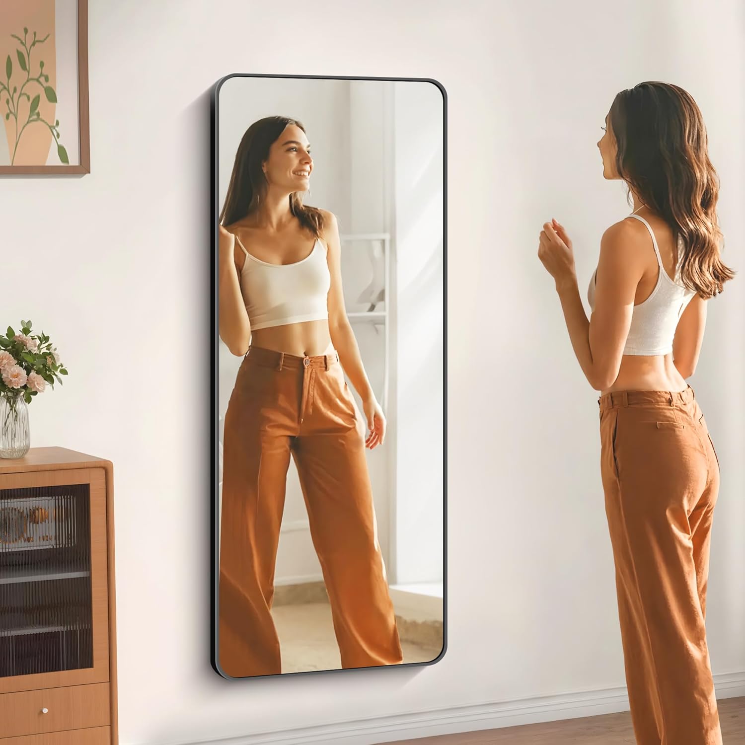 - [Vertical or Horizontal Mounting]: package size is 62.9 x 27.1 x 1.5 inches. The metal frame dresser mirror can be hung vertically or horizontally. In addition, the mirror can be leaned against the wall as decoration. Please read the instructions before punching the holes and choose two correct holes.