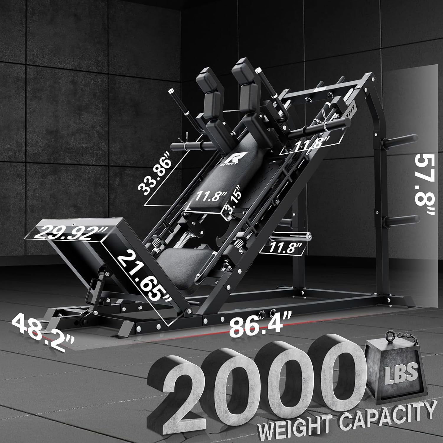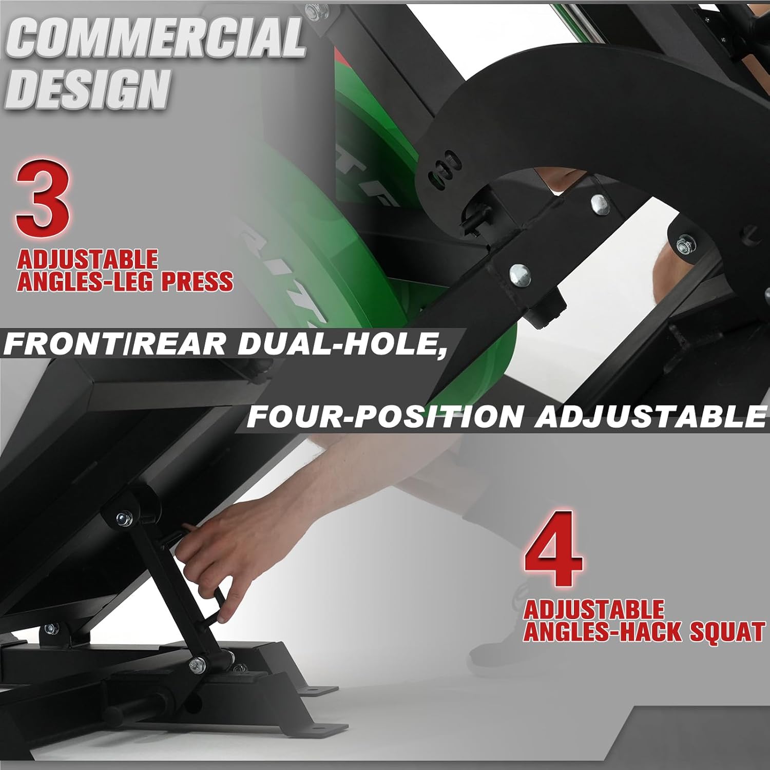 - 【Flexible Training Options】Maximize your training with versatile settings: 4 adjustable angles for hack squats and 3 for leg presses, designed to fit users of different sizes. Transition effortlessly between exercises by simply adjusting the back pad and leg press footplate.