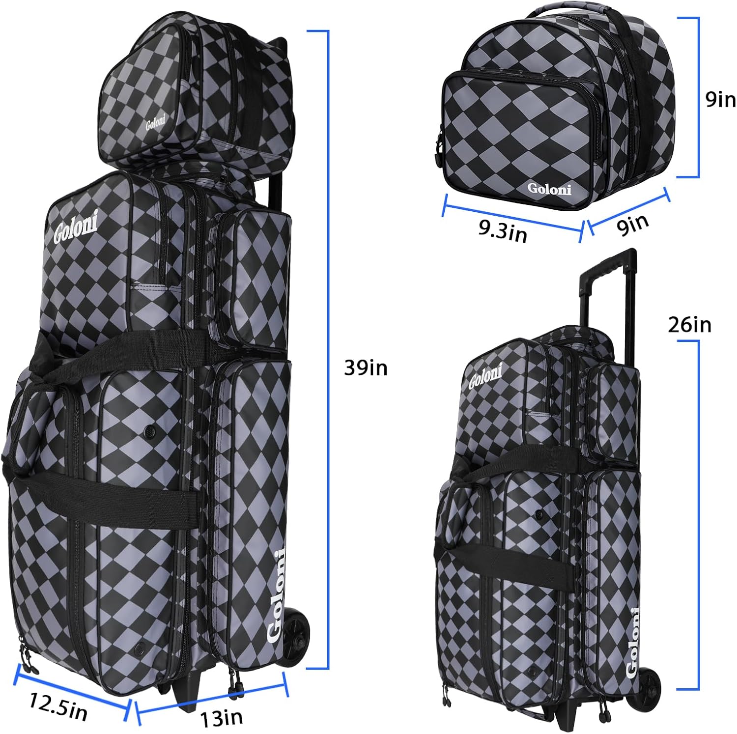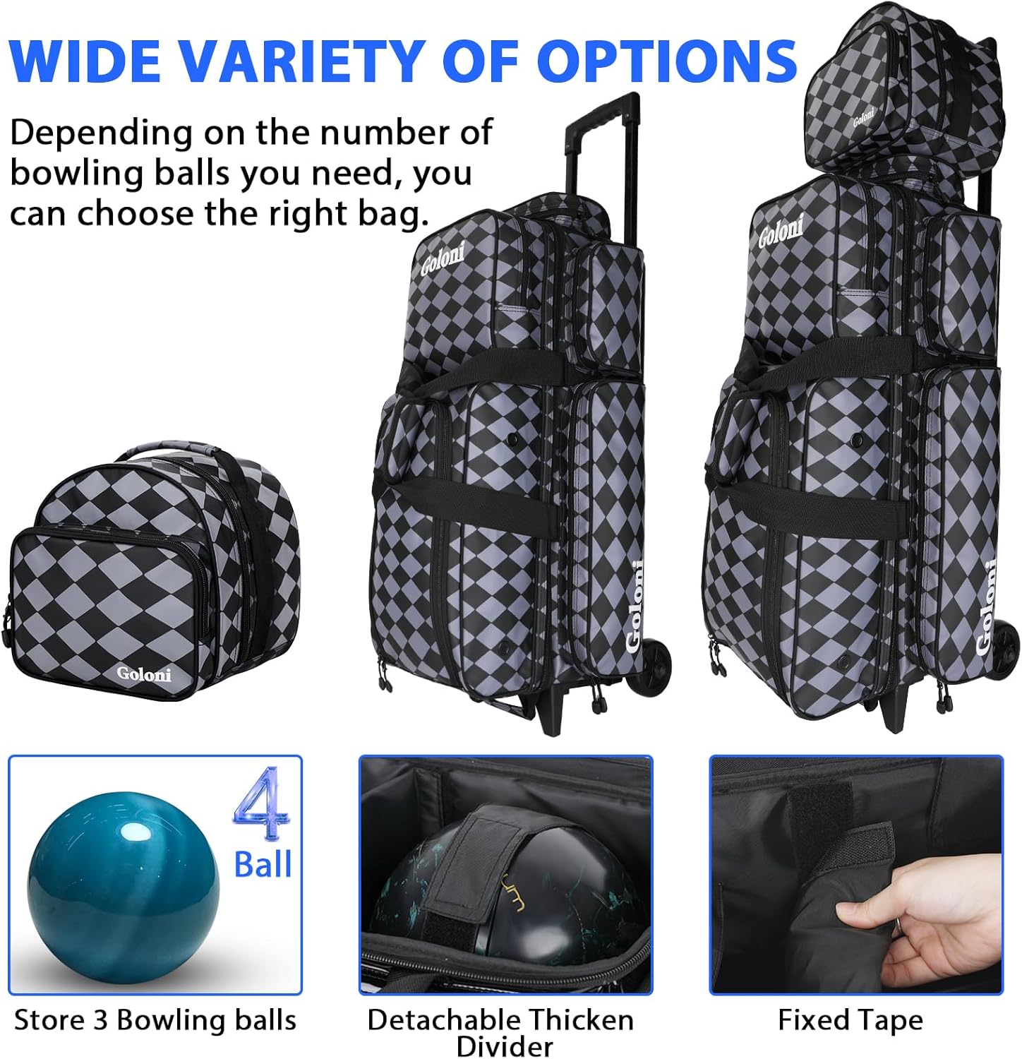 4 Ball Bowling Bags with Wheels,3 Ball Bowling Bag + 1 Ball Tote,Separate Shoe Compartment for Shoes (Up To US Men Size 16)