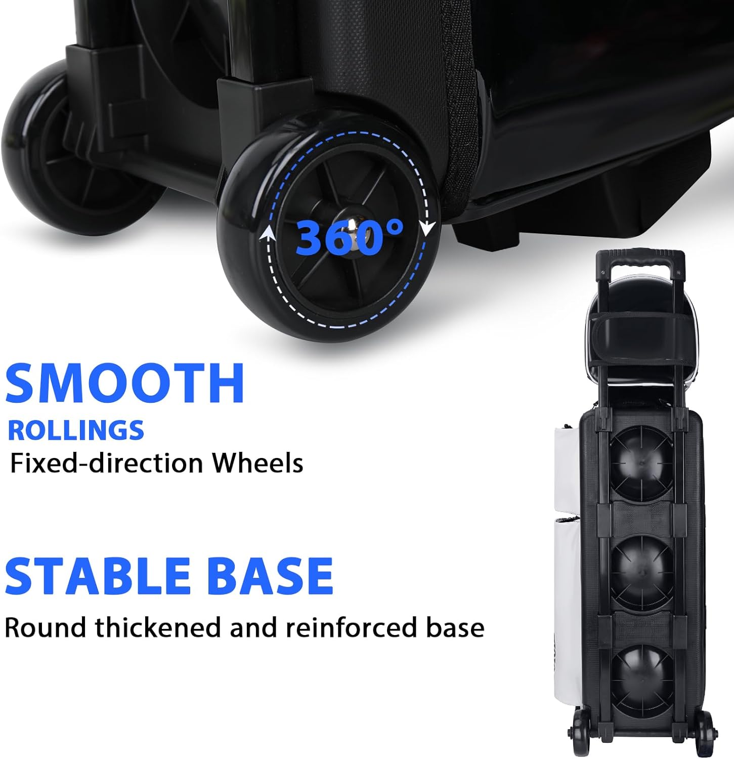 - Smooth and Sturdy Wheels:Equipped with large - size, ultra - quiet wheels, it rolls smoothly and steadily, ensuring effortless maneuverability on various surfaces. These wheels not only minimize noise but also enhance stability and passability, allowing you to glide through bowling alleys, parking lots, and other terrains with ease and without causing any disturbance