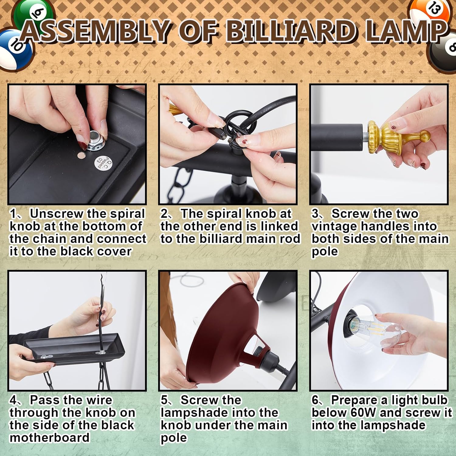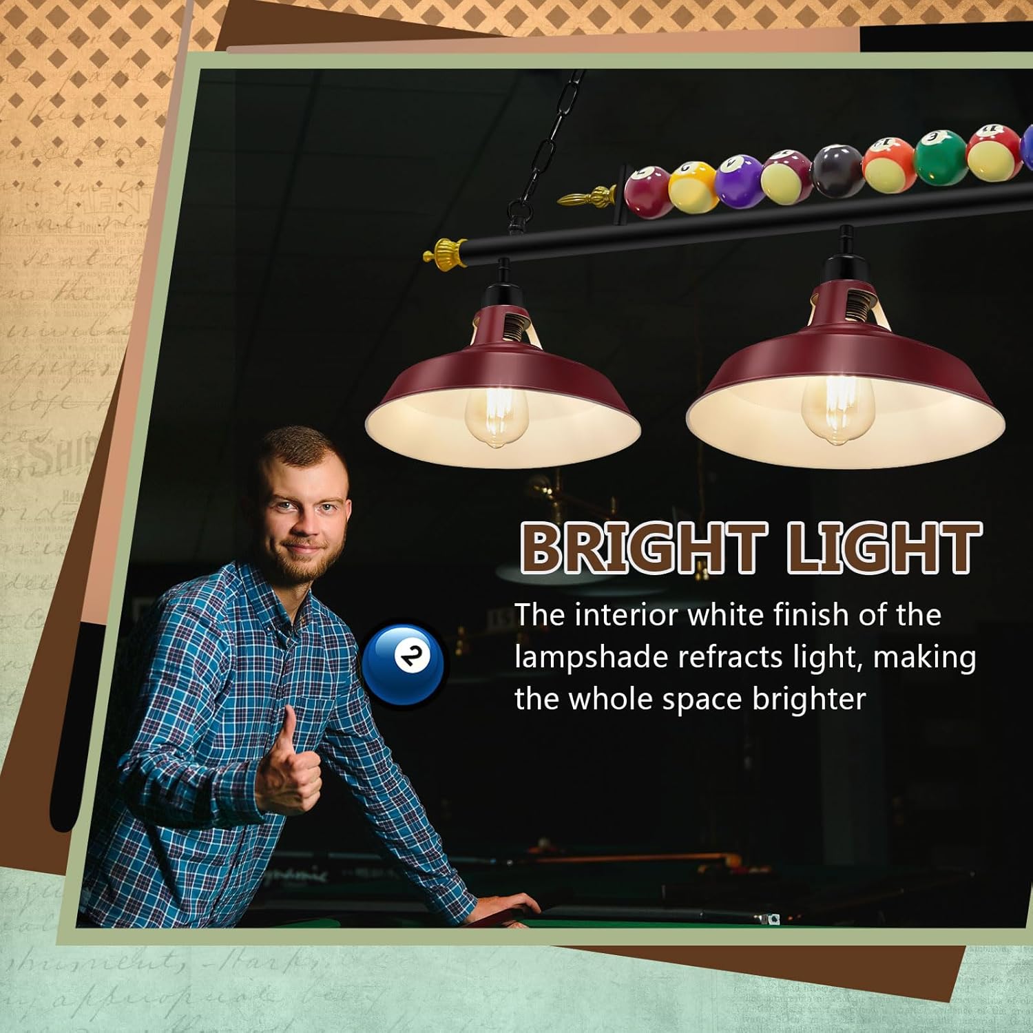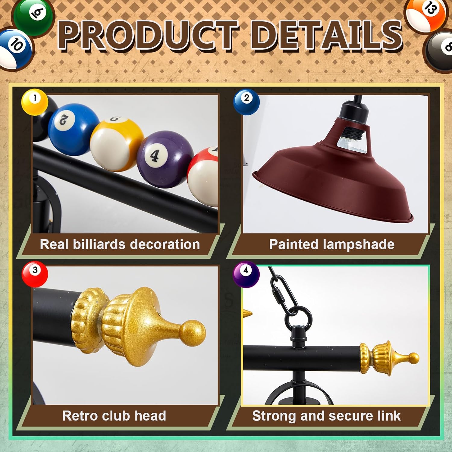- Durable Material: the exquisite lights for pool are crafted using quality metal with a sophisticated burgundy red finish, ensuring longevity and durability; The elegant and vintage look enhances your decor, creating a captivating ambiance for your gaming room