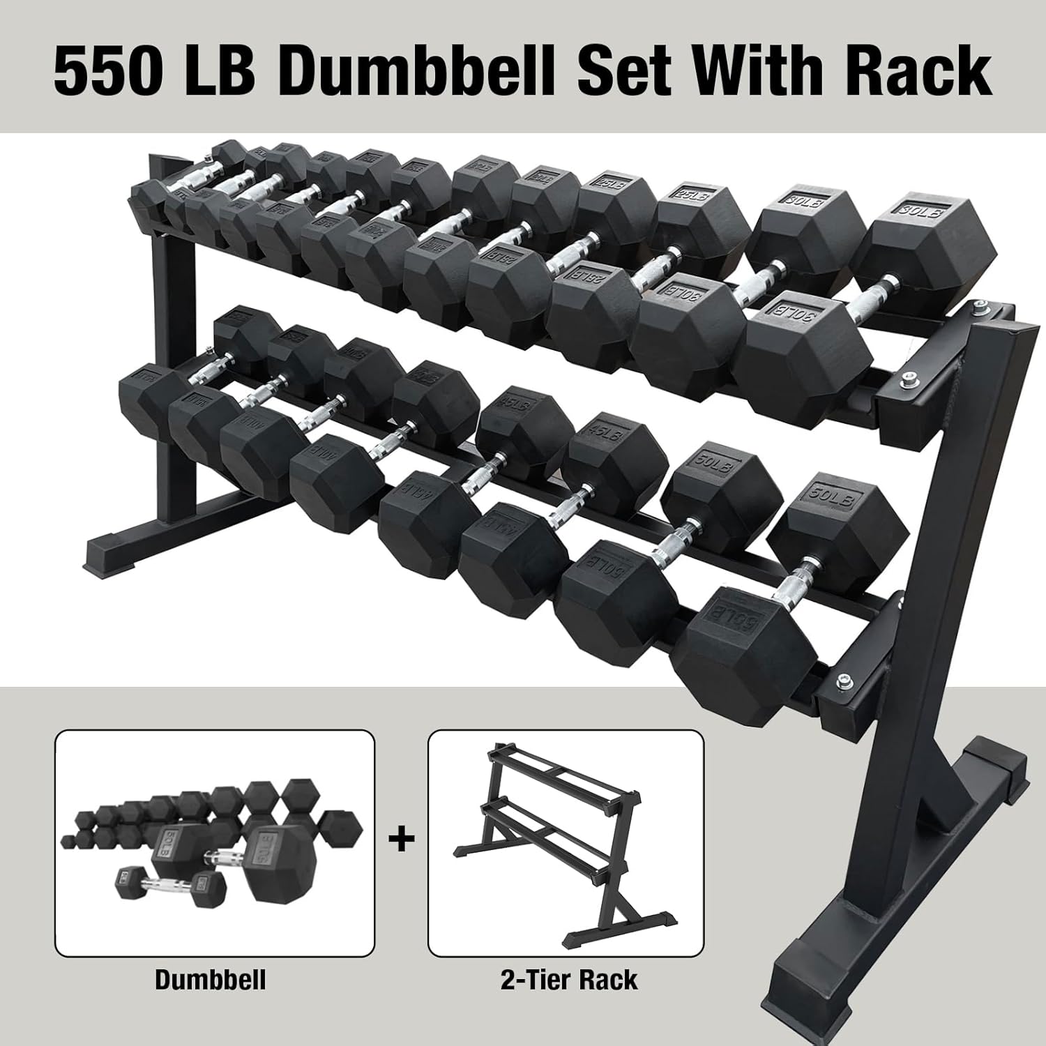 - Color : 550lbs Dumbbells W/ 2-tier Rack