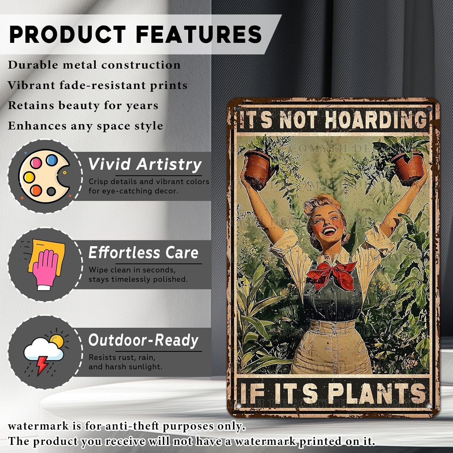 Retro Garden Metal Sign It's Not Hoarding If It's Plants Vintage Gardening Decor Metal Plaque for Parlor Yard Oasis Backyard Patio Greenhouse Decoration 12 * 8inch