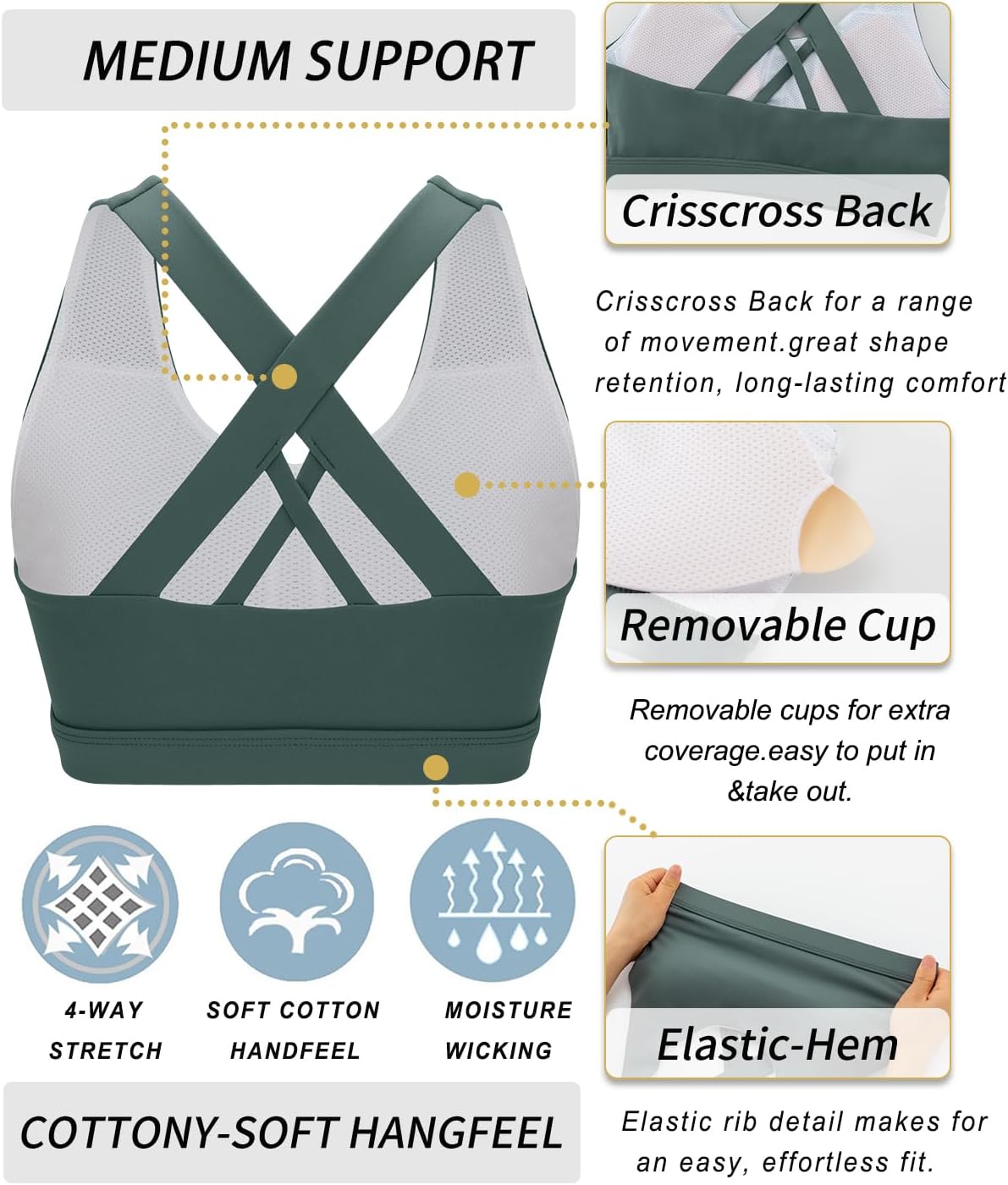 RUNNING GIRL Sports Bra for Women, Criss-Cross Back Padded Strappy Sports Bras Medium Support Yoga Bra with Removable Cups